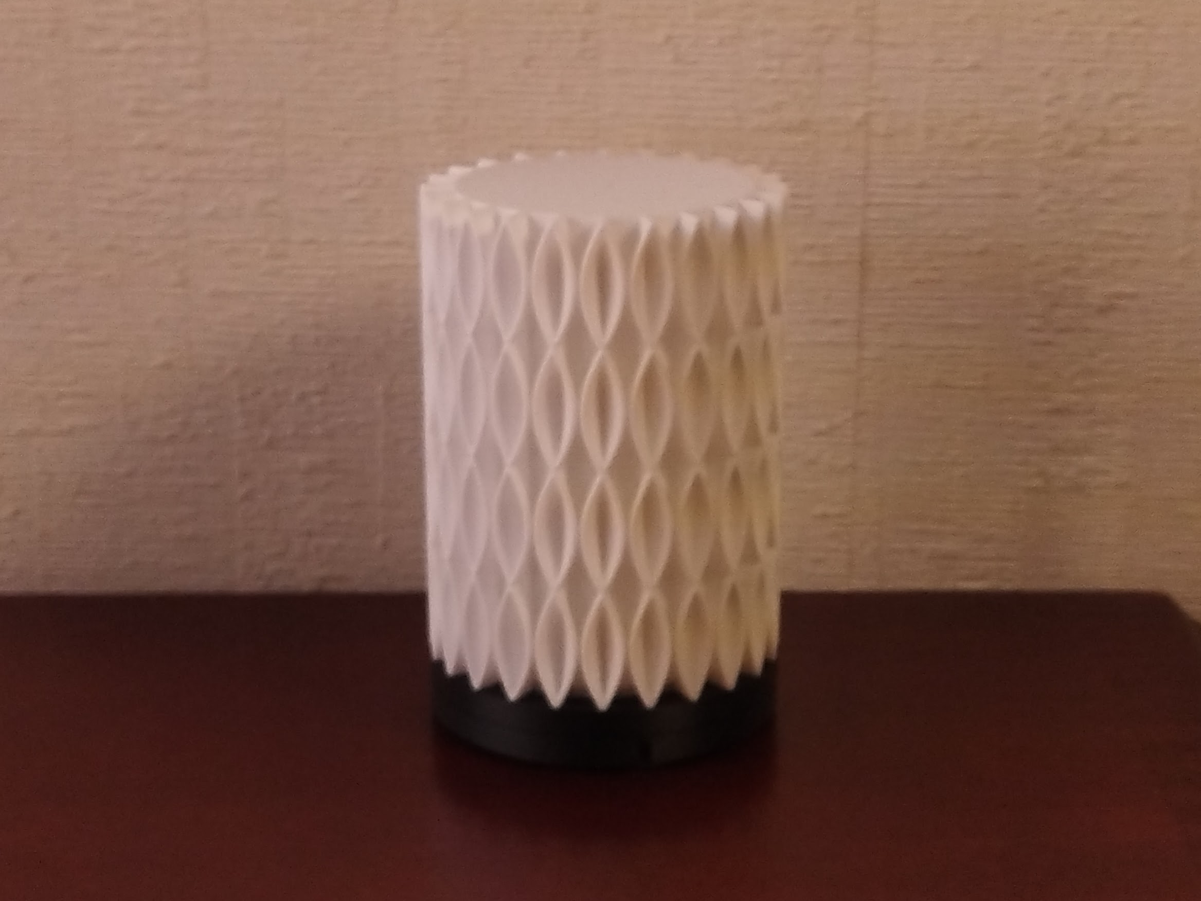 Mini Cross Wave Lamp là biến thể thứ ba của Mini Wave Lamp, dùng LED Lamp Kit 001. File 3mf (Orca Slicer) gồm 2 plate: Shade in vase mode (3 lớp đáy solid), phần đế in normal mode và cần dán keo khi lắp ráp.