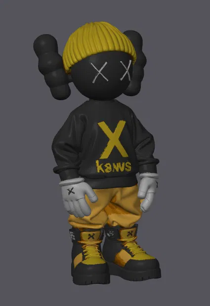 Mô hình 3D phong cách art toy urban, lấy cảm hứng từ thẩm mỹ hiện đại của street art. Nhân vật có thiết kế biểu tượng với gương mặt tối giản và đôi mắt hình X, gợi lên một bản sắc bí ẩn, đậm chất đương đại.