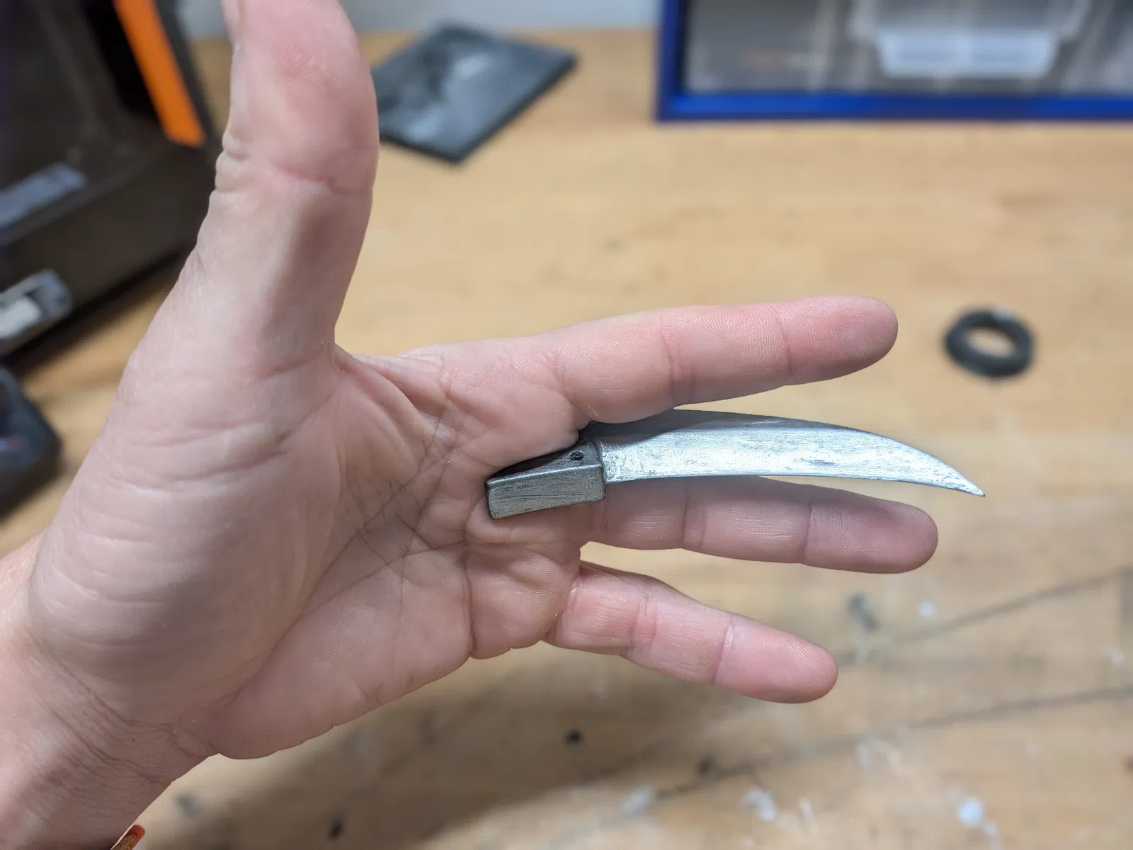Móng vuốt cosplay dài 10 cm gắn giữa hai ngón tay, dáng cong tự nhiên giúp tạo pose linh hoạt và canh lưỡi theo ngón. In nguyên khối, có file .3mf tối ưu, dễ hoàn thiện kiểu kim loại.