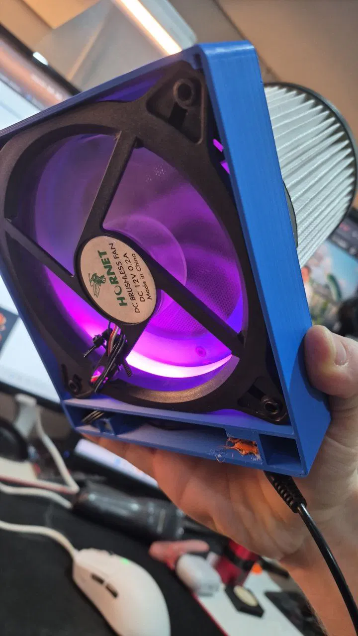 Mẫu bộ lọc không khí 120mm dùng quạt 120mm, lõi HEPA Kaminer và carbon filler. Có hướng dẫn linh kiện cần chuẩn bị và lưu ý các điểm có thể lệch lỗ M4 hoặc lỗ DC socket connector hơi lớn.