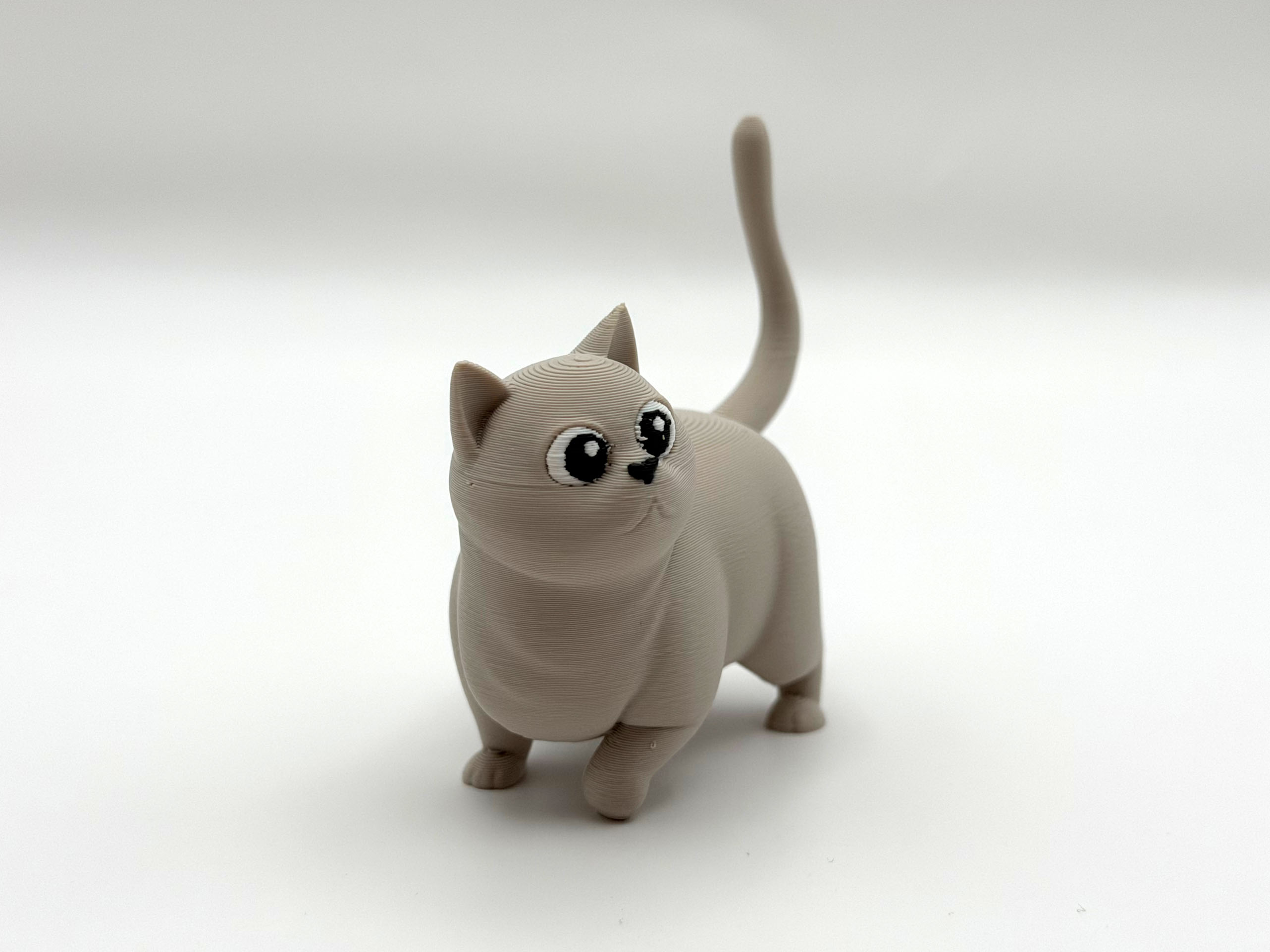 Woot Kitty là bé mèo chonky tròn mũm mĩm, mắt to cực dễ thương, hợp để trang trí hoặc sưu tầm. In 3D cần ít support; dùng organic-style supports và chỉnh Z-top height giúp tháo support nhẹ nhàng hơn.