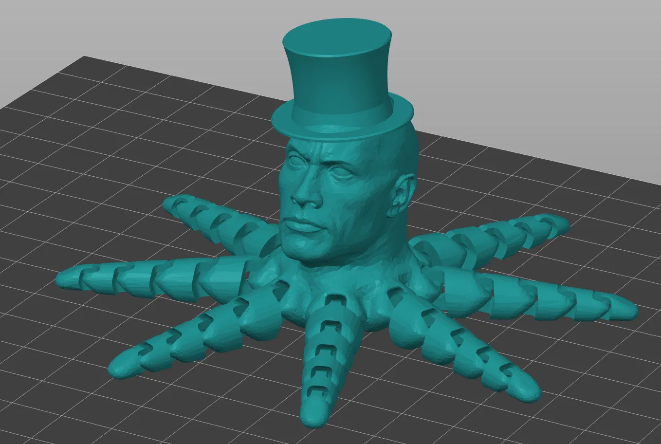 Mẫu 3D “Rocktopus in a hat”: một hòn đá tạo hình bạch tuộc với tám tay và đang đội nón. Phù hợp để in 3D làm đồ trang trí nhỏ gọn, vui mắt trên bàn làm việc hoặc kệ trưng bày.