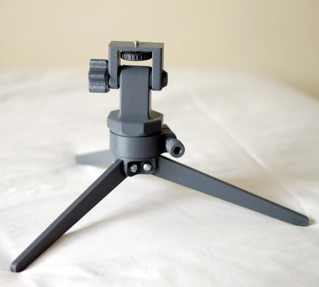 Cái tripod mini này sinh ra để dành cho máy ảnh DSLR và máy ảnh kỹ thuật số, với khả năng xoay dọc/ngang, cấu trúc chắc chắn không cần hỗ trợ in. Hướng dẫn in ấn và lắp ráp chi tiết kèm danh sách phụ kiện cần thiết.