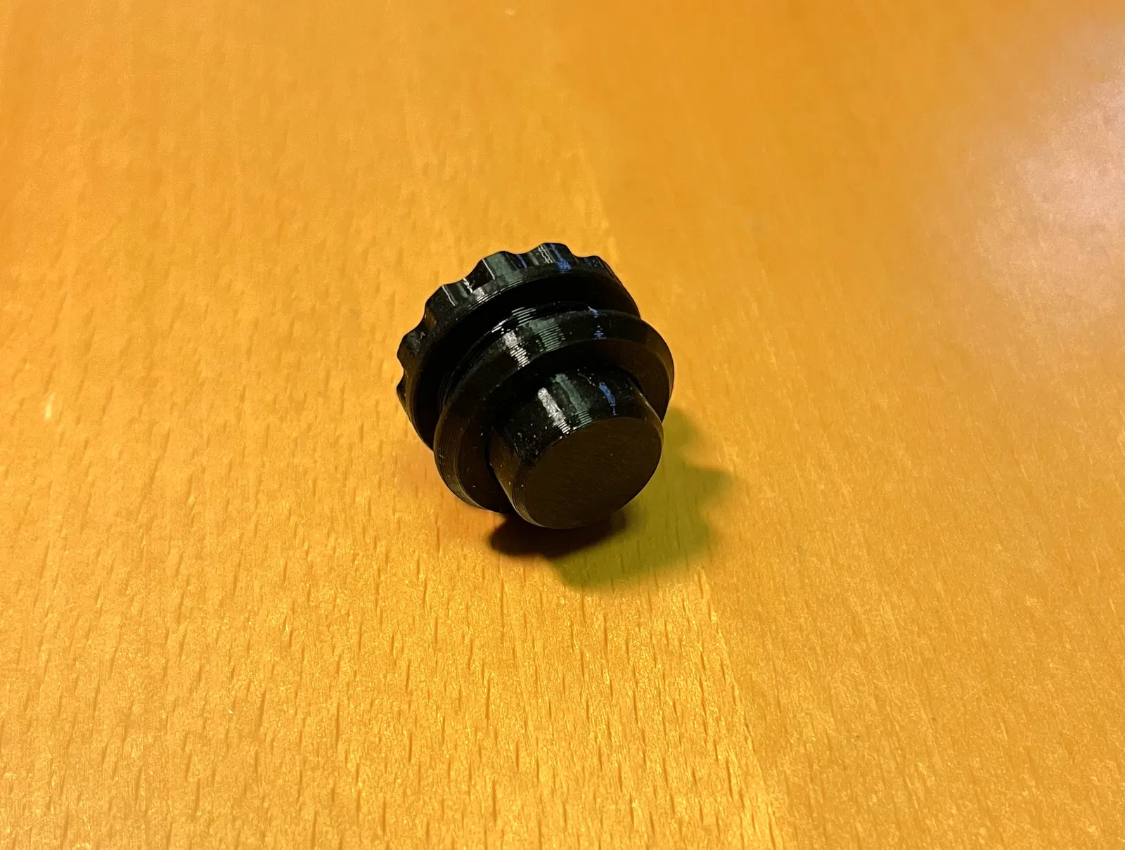 Mình in bằng PETG với layer height 0.15 mm — hướng in đúng như trong file “set of four”. Phần support duy nhất cần là ở hốc lò xo của thân chính. Ren (threads) và các chi tiết còn lại không cần support. Con ê-cu M5 nhỏ có thể cần chạy lại bằng tap để làm sạch ren. Ren đực trên nút bấm dài đủ để bạn “khóa” bằng cách chấm nhẹ mỏ hàn hoặc dụng cụ maker’s tool sau khi chỉnh được độ nhô tối ưu.