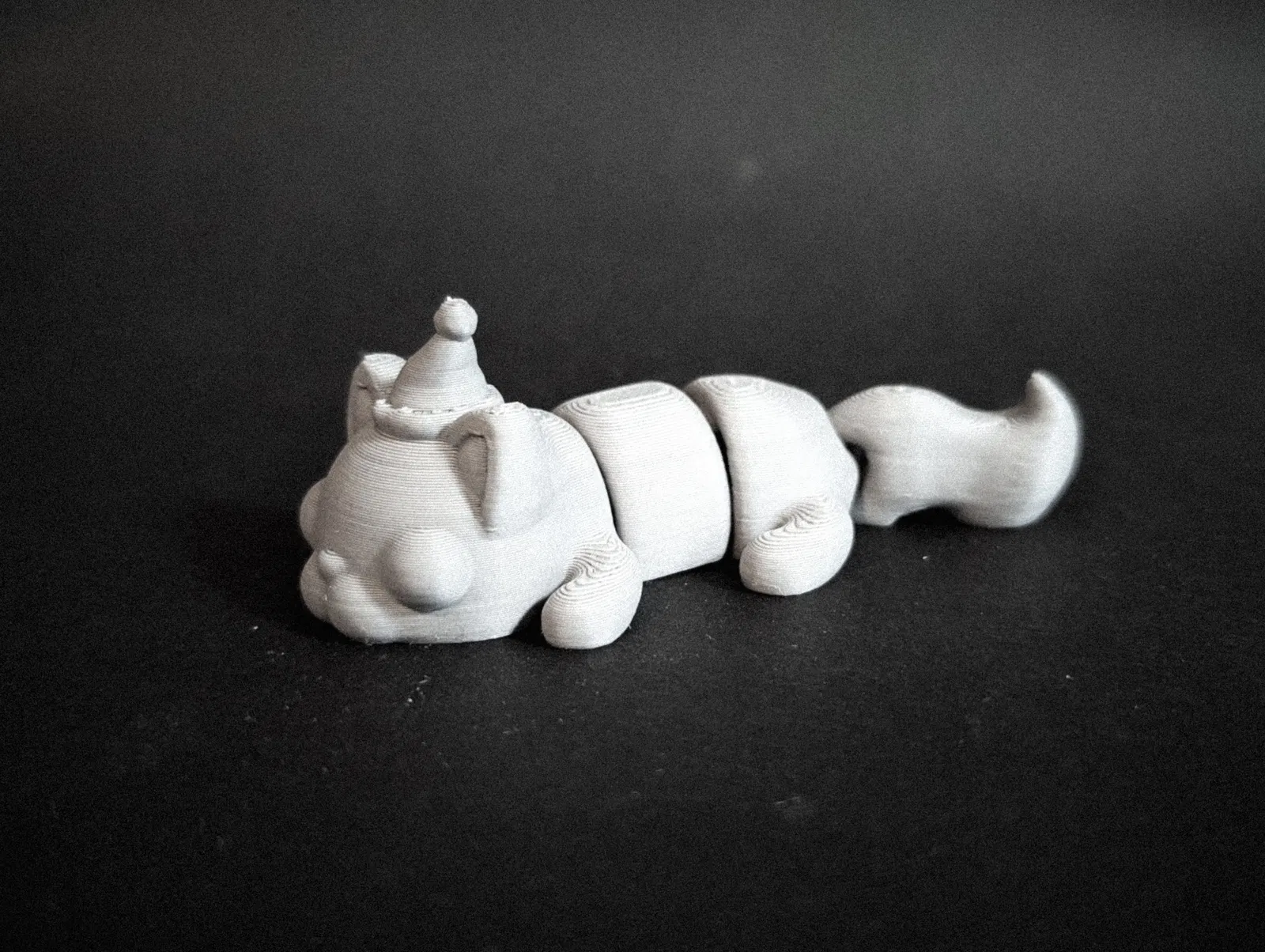 Mèo Flexi Giáng Sinh phiên bản thiết kế mới: khớp chắc hơn, dáng tròn mượt hơn, mắt tai to hơn. Có bản multicolor/singlecolor và bản keychain. Print in place, không cần supports, dài khoảng 80mm.