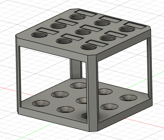 Lưu ý: Mẫu này cần một cái hộp bên ngoài thì mới dùng ngon. Các lỗ ở đáy của rack là thông xuống, đáy nozzle sẽ tựa trực tiếp lên hộp bên ngoài. Nếu bạn muốn một rack có đáy kín (solid layer) thì cứ nói mình biết, mình sẽ thêm model :)