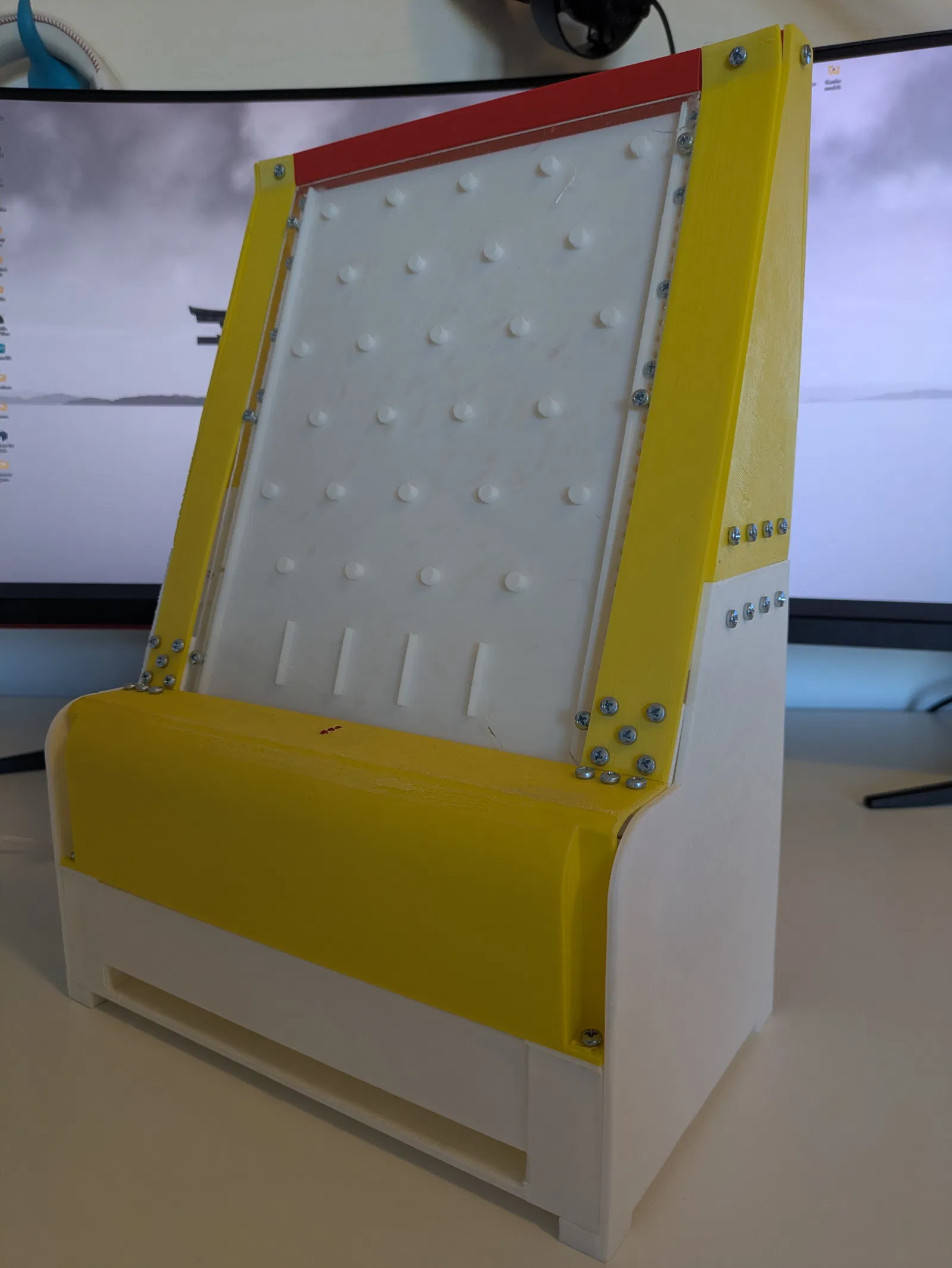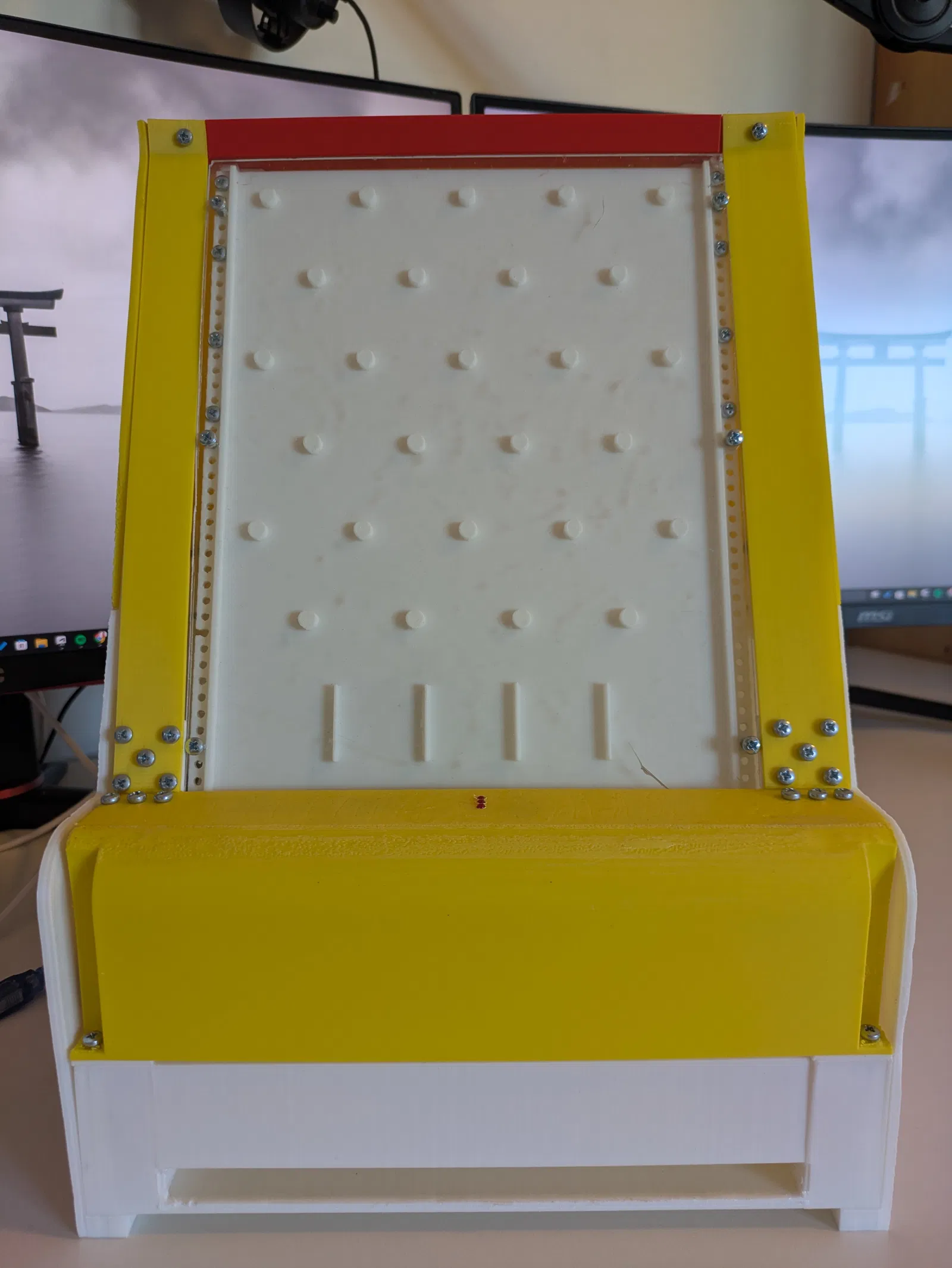 Mô hình Printable Arcade machine dạng Plinko: thả puck từ trên xuống, nảy qua các chốt và rơi vào ô tính điểm. Kết hợp cơ khí đơn giản với Arduino và linh kiện điện tử, kèm hướng dẫn lắp ráp từng bước.