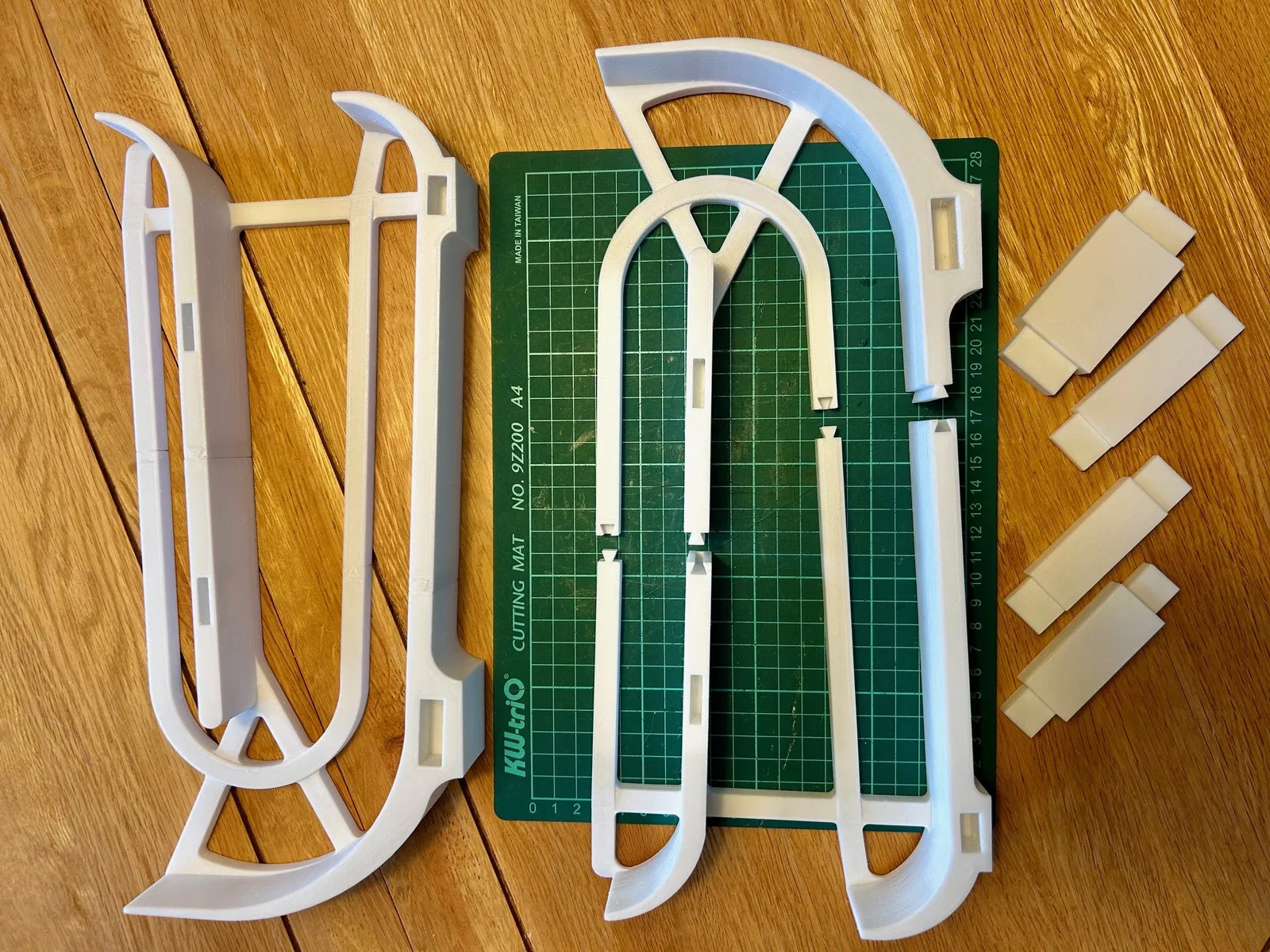 Print Notes: Đây là các bản in nhiều phần và cần lắp ráp. Mình in bằng PETG vì vật liệu này food-grade, chống nước và bền UV. Phần đáy của mỗi dove-tail có một rãnh lõm 2.1mm nên cần bed support nếu bạn in từ file STL. Các bridge rods có thể xoay hướng in để không cần support. File BGcode đã có sẵn support. Hãy gỡ vật liệu support sạch và chính xác trước khi lắp ráp. Infill gyroid 20% có vẻ là đủ, dù mình đã tối giản kết cấu chịu lực theo phương thẳng đứng.