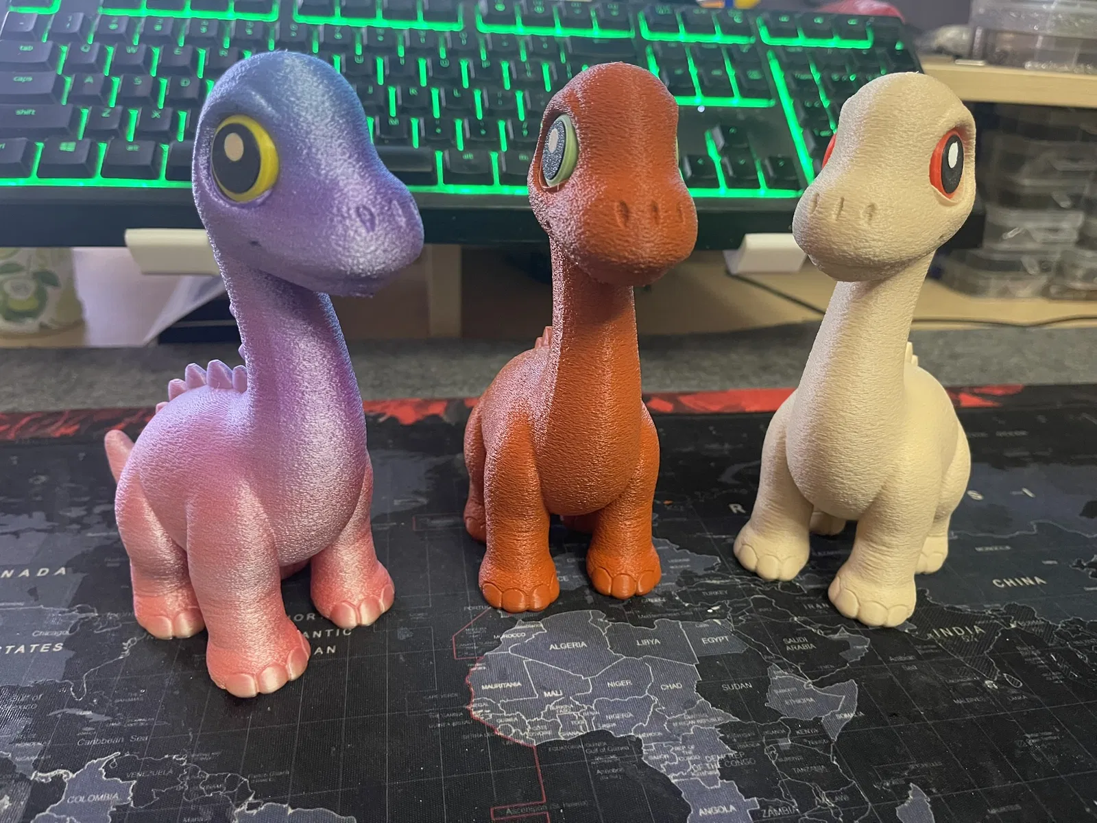 Longie là khủng long cartoon mắt to siêu dễ thương, hợp để trang trí bàn làm việc, làm quà cho người mê dinosaur hoặc để trong phòng bé. In 1 màu không cần AMS; có 3MF và STL, lắp mắt đơn giản bằng keo.