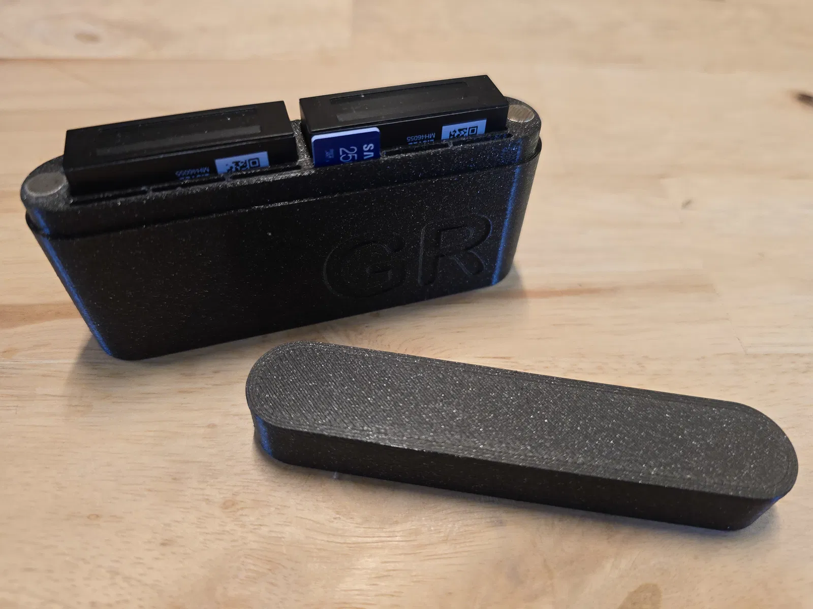 Hộp đựng pin Ricoh DB-120, phù hợp để mang theo 2 viên pin Ricoh GR IV (4) và 6 thẻ micro SD. Thiết kế gọn gàng, dùng 4 nam châm tròn 6mm x 1mm dán keo để giữ nắp.