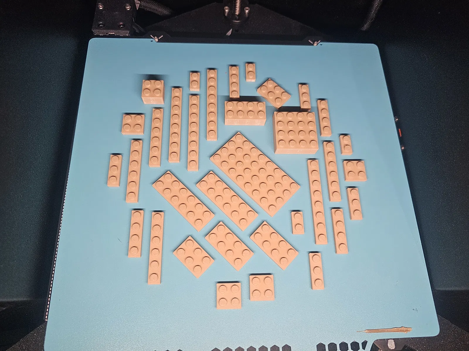 Lego bricks generator kèm các mẫu dựng sẵn. Thiết kế cho Core One, studs hơi oversized để bám chắc, in ra sạch và “snap” khít. Có file nguồn SolidWorks để chỉnh studsX/studsY và tinh chỉnh tolerance khi cần.