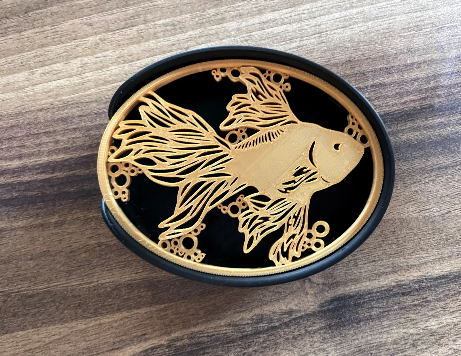 Khay để xà phòng hoặc bàn chải với phong cách cá Nhật (koi). Có 2 phiên bản: một bản nhiều chi tiết “bọt” và một bản tối giản. Gợi ý phối màu vàng–đen nhìn đẹp, chờ bạn sáng tạo thêm.