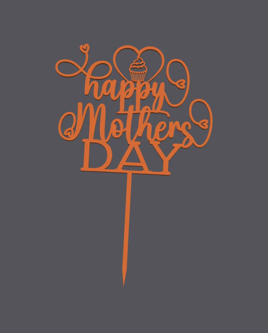 Topper trang trí bánh với chữ “Happy Mother’s Day”, thiết kế gọn đẹp, dễ in và thân thiện cho người mới. In PLA, layer 0.2 mm, infill 10–15%, không cần supports, in phẳng; có thể tuỳ biến màu theo chủ đề.