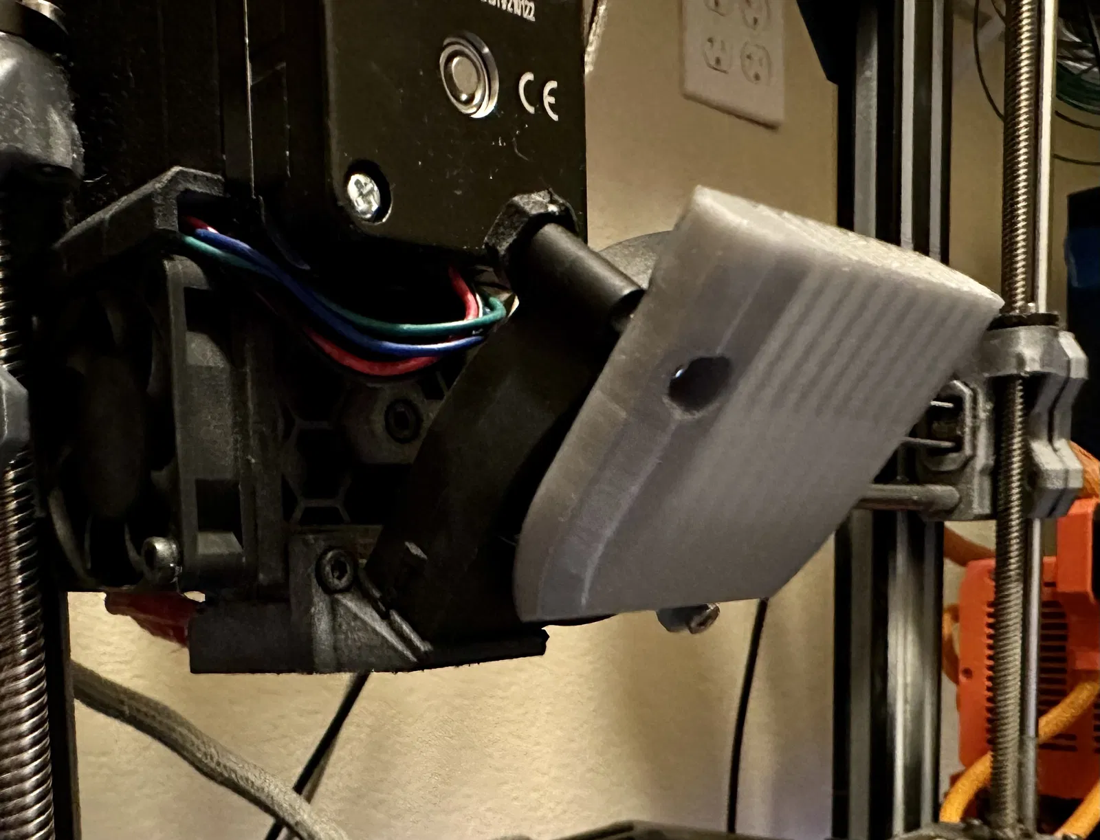 Tôi muốn một chiếc khiên của người Viking để giữ cho phần của tôi làm mát không có mảnh vụn và cũng để giữ cho nó không tạo ra một bản nháp trên các bộ phận bằng cách hút không khí ấm áp từ giường. Tôi thích mô hình gốc nhưng nó quá dày để sử dụng trên quạt góc của tôi vì vậy tôi đã tạo một phiên bản góc cạnh mỏng hơn hoạt động tốt trên máy in của tôi.