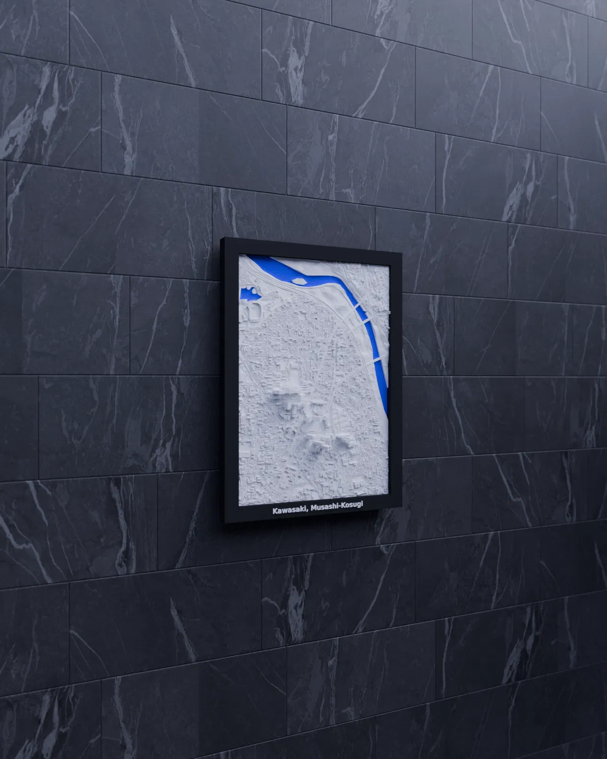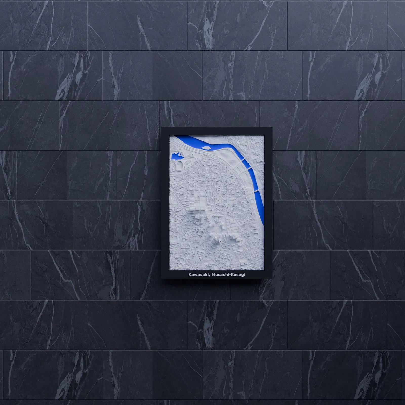 Tái hiện địa hình Kawasaki, Musashi-Kosugi (Nhật Bản) dạng miniature in 3D, dựng từ dữ liệu địa lý. Kèm nhiều lựa chọn frame có/không khắc chữ, có lỗ treo, cùng print profile classic & arachne cho in đơn/multi color.