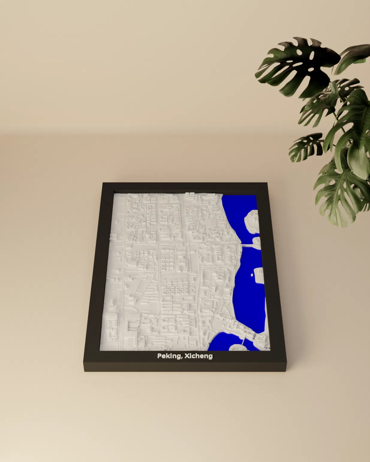 Mô hình thu nhỏ địa hình Peking, Xicheng (Trung Quốc) dựng từ dữ liệu địa lý, tỷ lệ ~12018:1. Kèm nhiều frame có lỗ treo, phù hợp in 3D làm decor, học tập hoặc trực quan hóa kiến trúc.