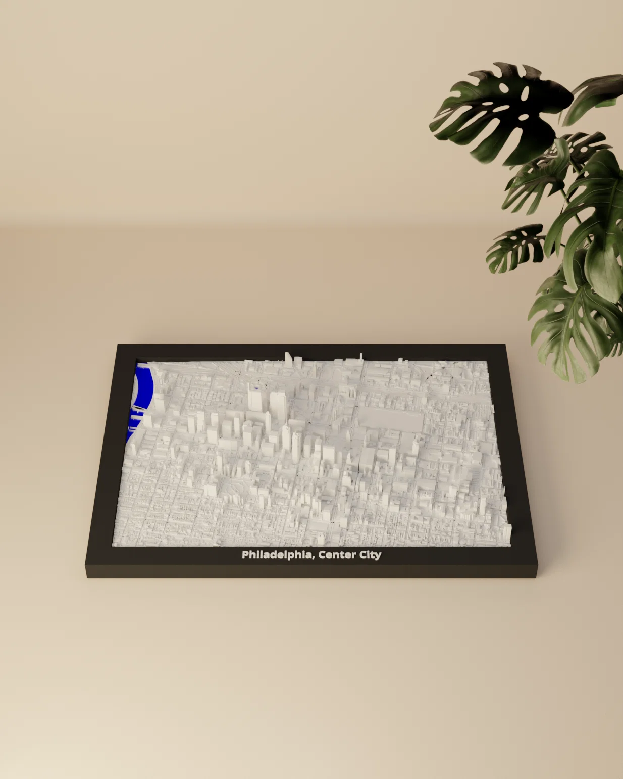 Tái hiện vẻ đẹp của cảnh quan đô thị Philadelphia, Center City với mô hình địa hình (topographic) mini này! Mẫu 3D này đại diện cho khu vực địa lý quanh tọa độ 39.953, -75.166 (LatLng).