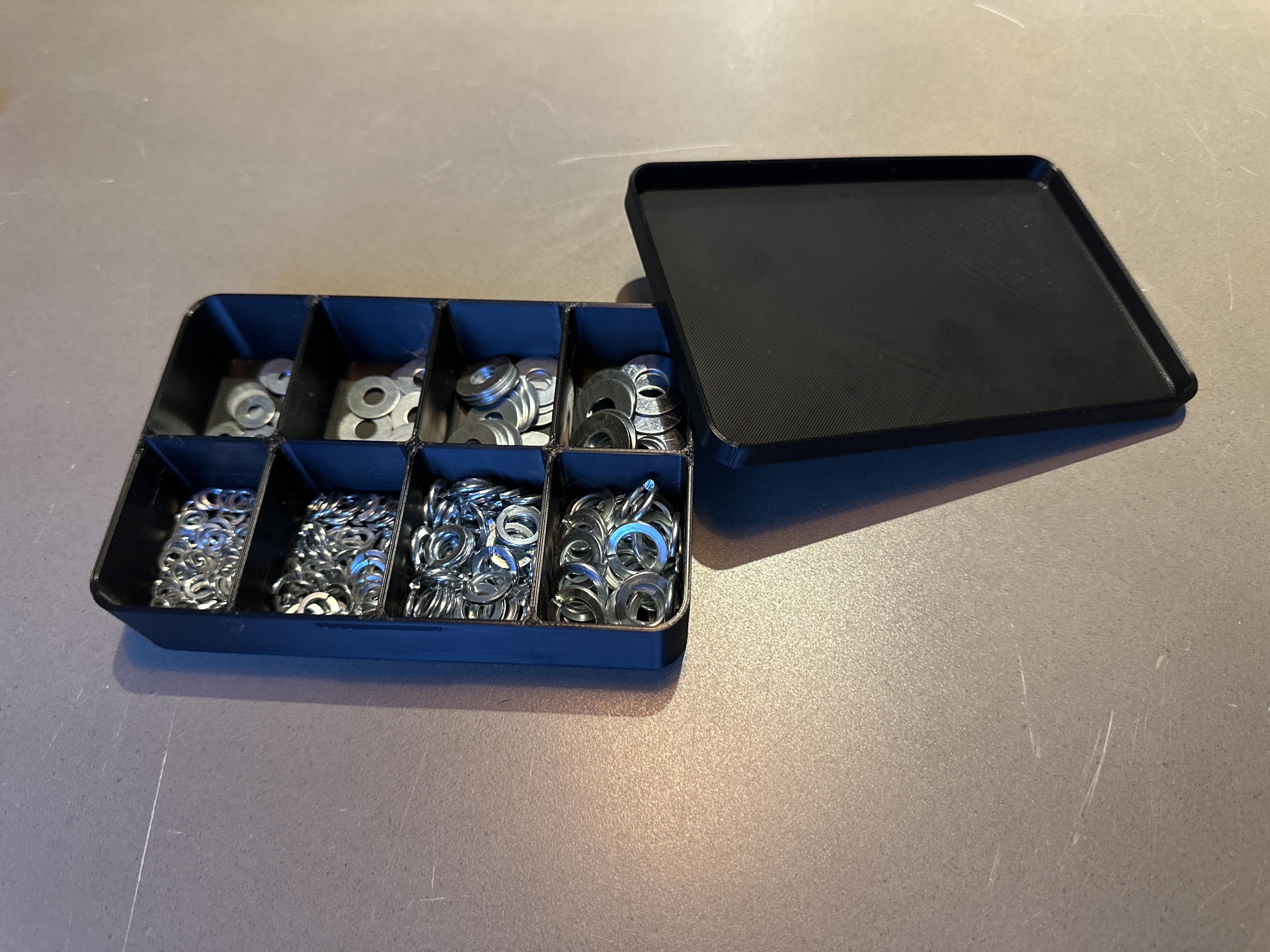 Hộp organizer linh kiện này được thiết kế để cất giữ ốc vít, đai ốc, vòng đệm và các chi tiết phần cứng nhỏ khác một cách gọn gàng, sạch sẽ và dễ lấy.