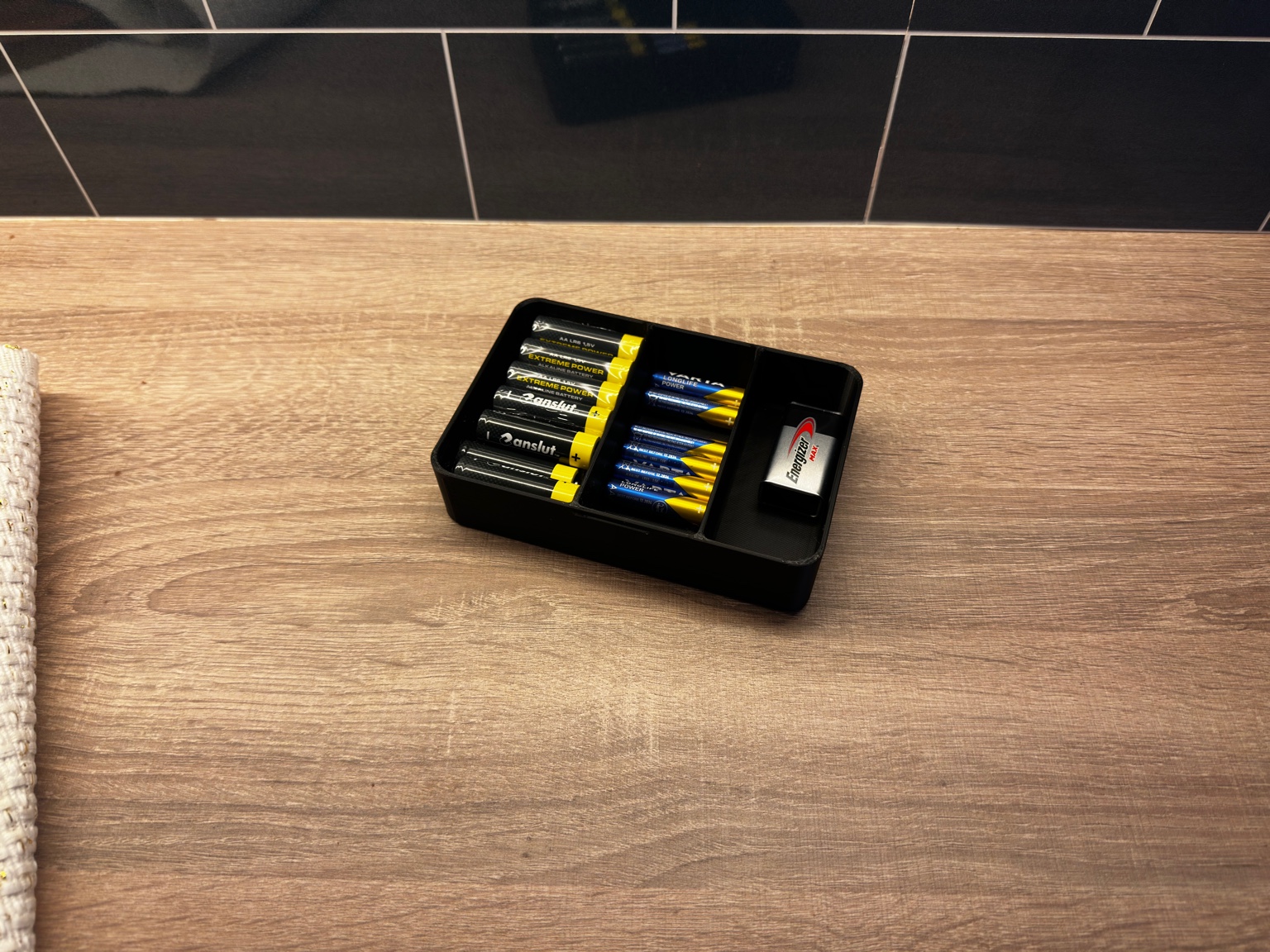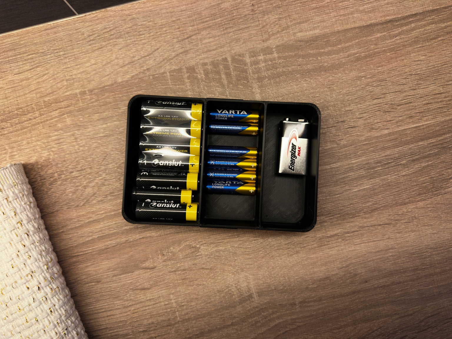 Thiết kế lòng hộp mở để linh hoạt cất pin AA, AAA, 9V và nhiều loại pin lẫn nhau.