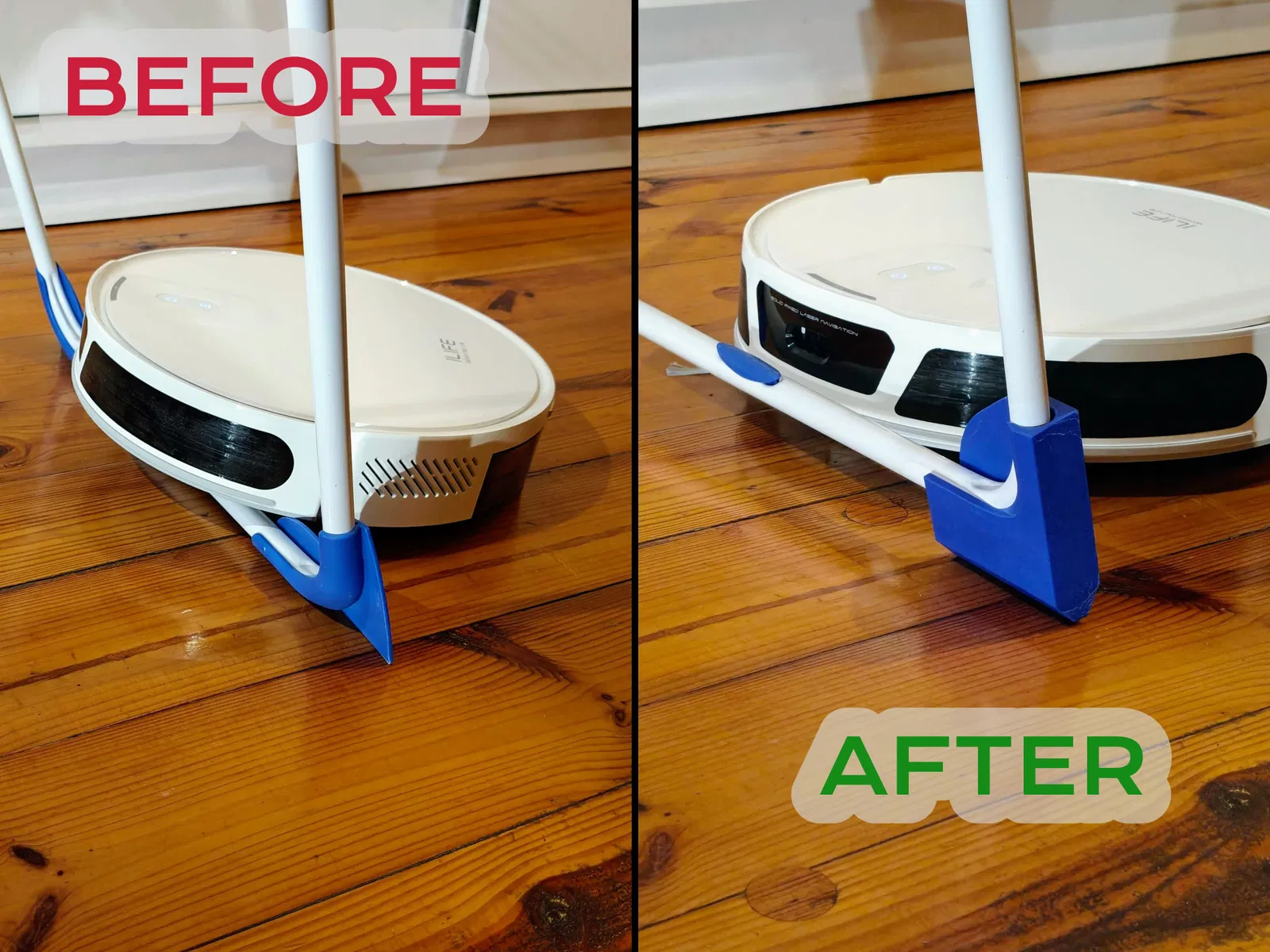 Nếu robot vacuum nhà bạn cứ hay bị kẹt dưới cái giàn phơi (airer), thì bộ chân thay thế dạng nâng cao này là giải pháp gọn gàng và nhìn đẹp mắt. Thay vì phải gắn thêm rào chắn hay mấy món nhựa phụ, mấy cái chân này thay luôn chân zin. Nó giúp nâng thêm chiều cao mà vẫn giữ được cảm giác “như hàng theo máy”.
