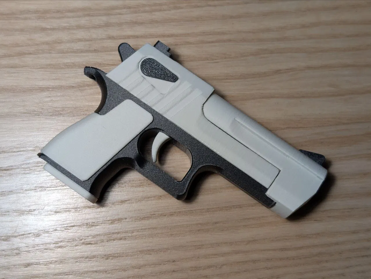 Đây là một fidget keychain phong cách Desert Eagle nhỏ gọn, được thiết kế hoàn toàn như đồ chơi không có chức năng bắn, với vài chi tiết chuyển động đơn giản.