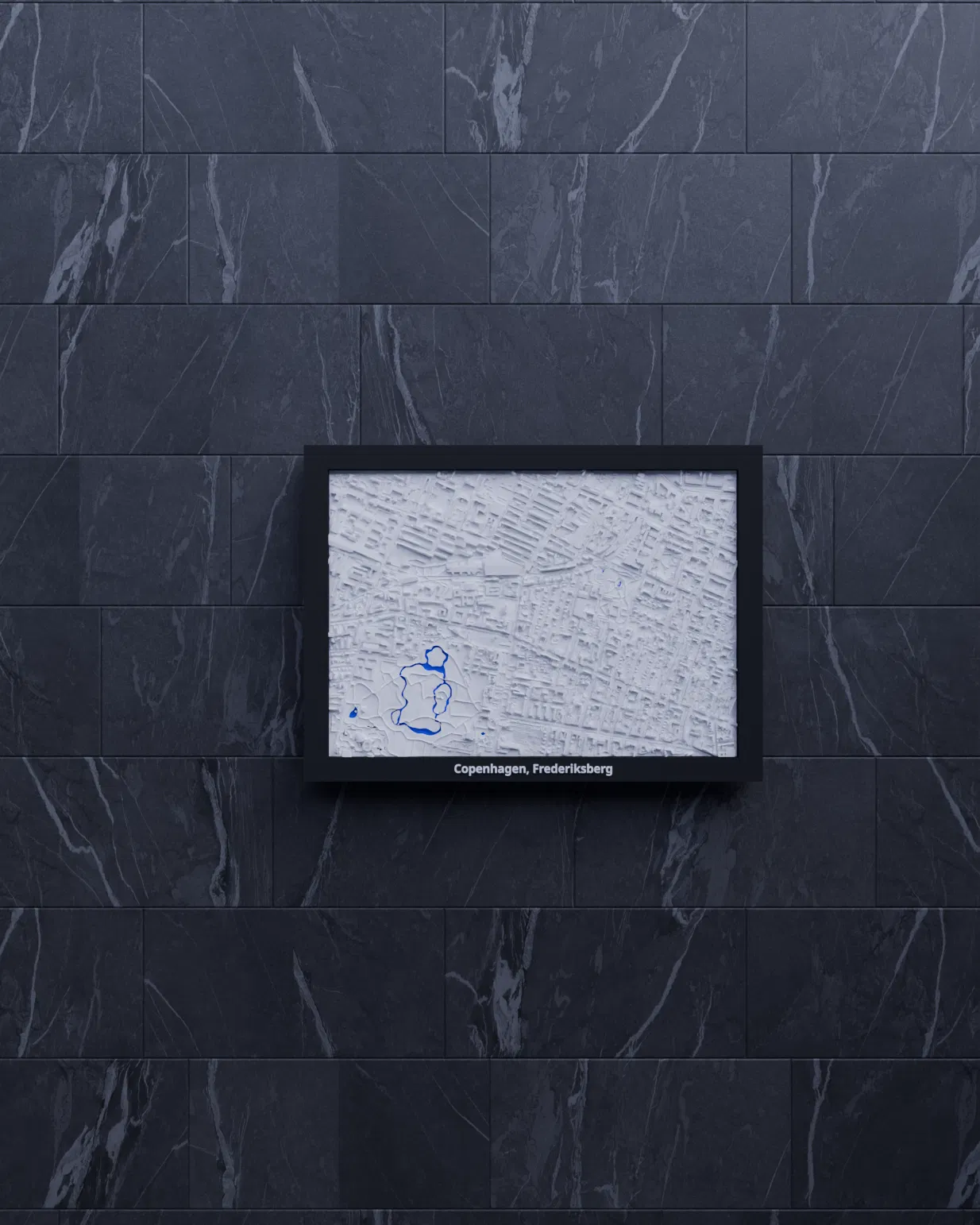 Miniature địa hình topographic của Copenhagen, Frederiksberg (Đan Mạch), dựng từ dữ liệu địa lý và thu nhỏ để in 3D. Có nhiều frame kèm lỗ treo, kèm print profile classic/arachne và hướng dẫn lắp ráp.