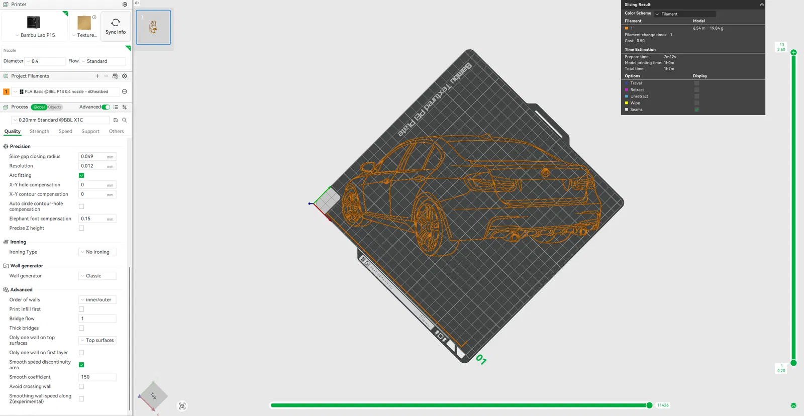 Đã in thành công trên Bambu P1S với Textured PEI Plate và filament PLA Basic. Mình thường tăng nhiệt độ heatbed cho toàn bộ quá trình in lên 60°C (140F) để bám bàn tốt hơn.