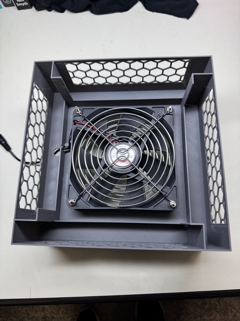 Mini Corsi filter dựa trên quạt máy tính 140mm và các tấm lọc 8x14x1. Dùng băng keo để bịt kín đường ráp giữa các tấm lọc. Phần nắp trên được cố định vào phần đáy bằng dây mini bungee. Nhớ đảm bảo luồng gió thổi ra ở phía đáy của bộ lọc.