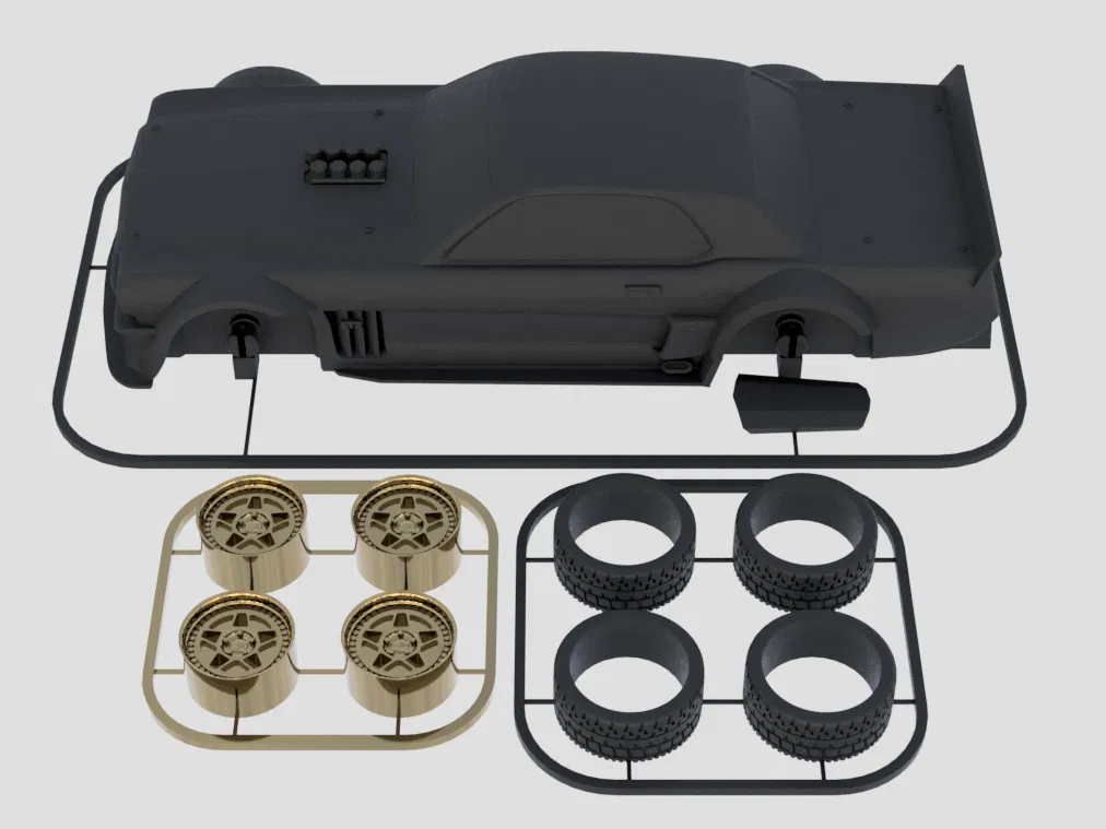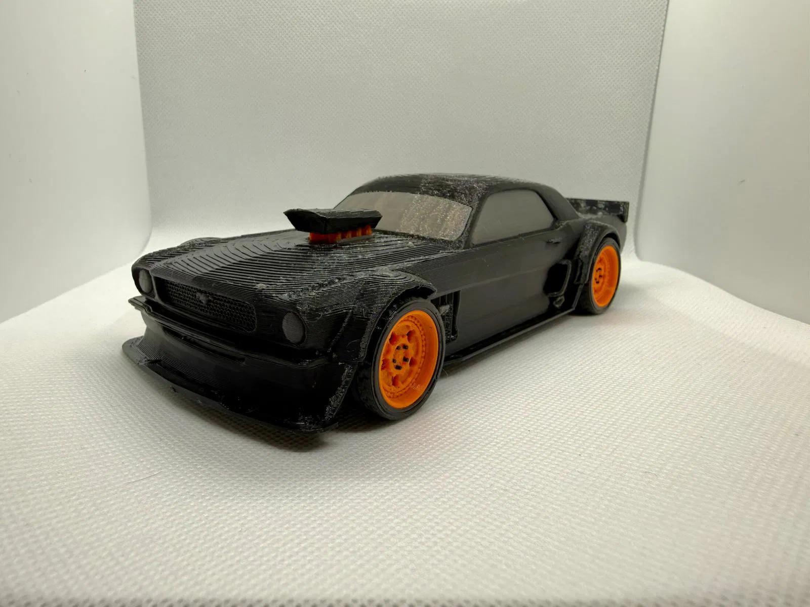 Model Ford Mustang HOONICORN tỉ lệ 1:24: V8 410 cubic inch, 845 hp, AWD. Có bản STL in một màu và 3MF cài sẵn màu cho AMS/MMU. Thiết kế không cần supports, có lựa chọn in dạng single parts.
