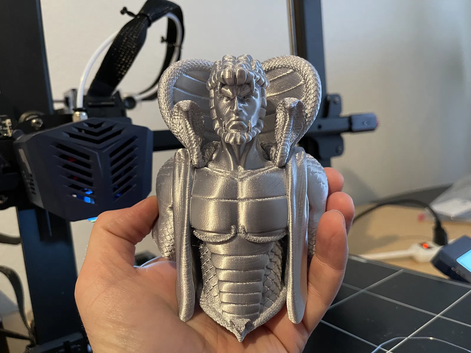 Serpentor – kẻ thù của GI Joe – nay đã có bản in 3D! Mẫu do Chaos Coretech thiết kế để kỷ niệm Anycubic Kobra Plus. Base và bust thường in không cần support, nhưng có thể thêm support cho bust.