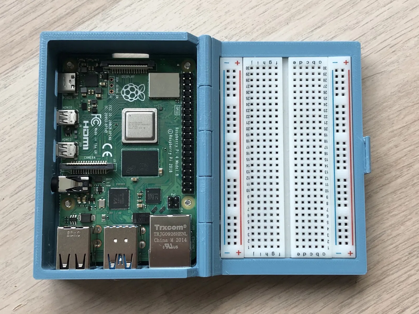 Raspberry Pi 4 Case với Breadboard tích hợp.