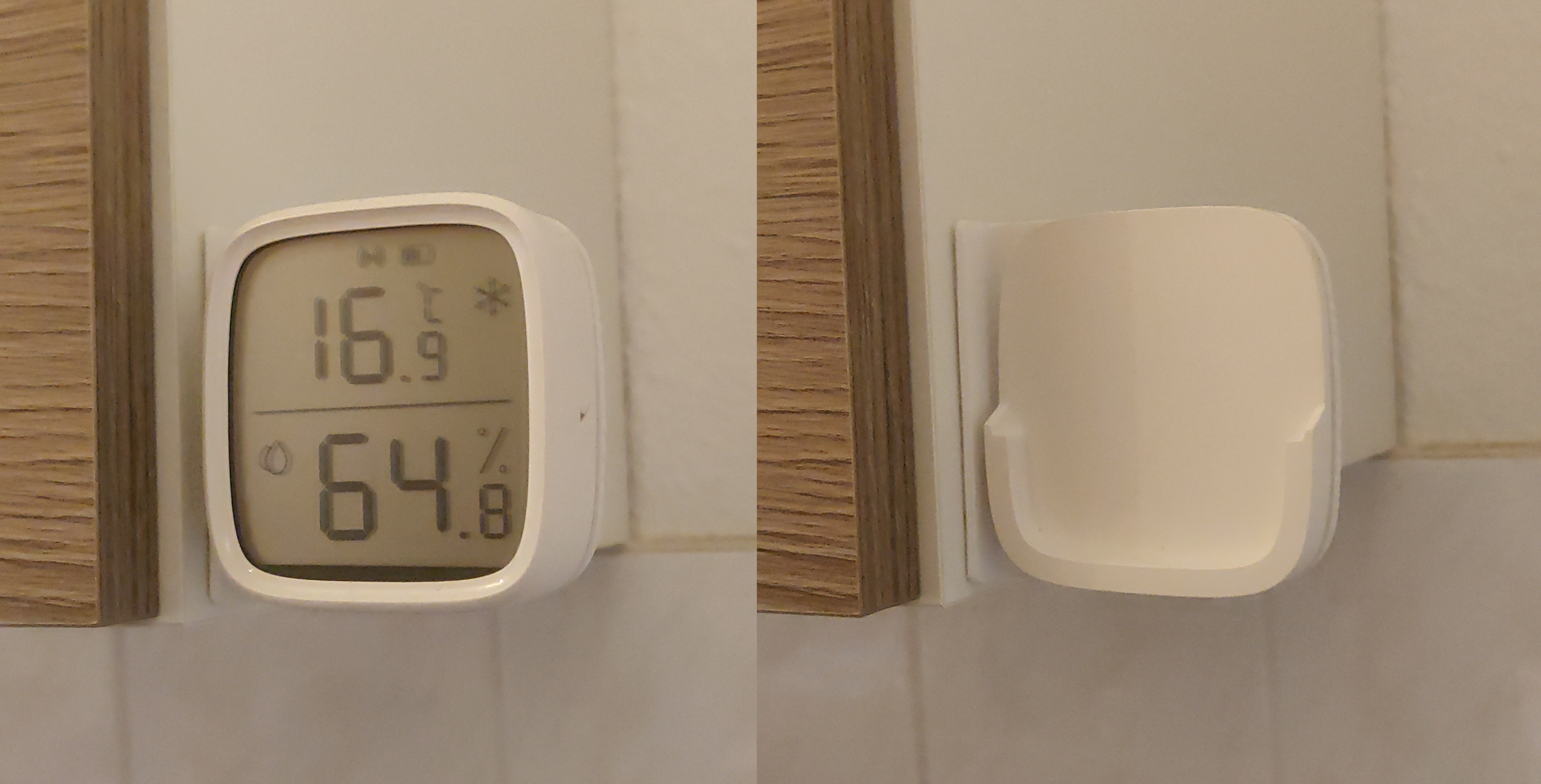 Đây là một giá đỡ gắn hông cho cảm biến Sonoff SNZB-02D Zigbee có màn hình hiển thị.