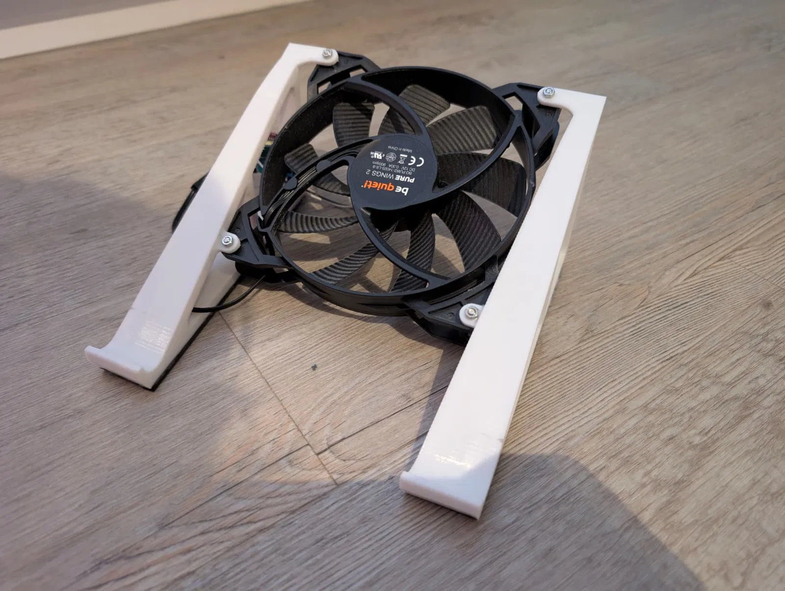 Mình tách model ra và thêm các ngàm (mount) để một quạt PC 140mm 12V kẹp/giữ hai phần lại với nhau. Quạt dùng USB-C để lấy nguồn 12V từ laptop, tốc độ có thể chỉnh bằng bộ điều tốc PWM. Phần điện tử mình dùng:
