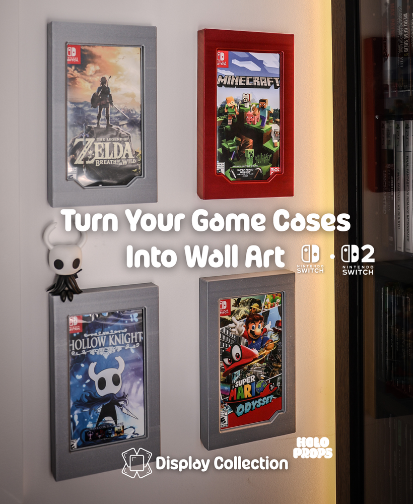 Khung trưng bày Switch Classic để treo hộp game Nintendo Switch 1/2 lên tường bằng nam châm. Thiết kế gọn sạch, modular, có 3 biến thể, dùng nam châm 10×3 mm và file 3MF tối ưu sẵn để in nhanh, đẹp.