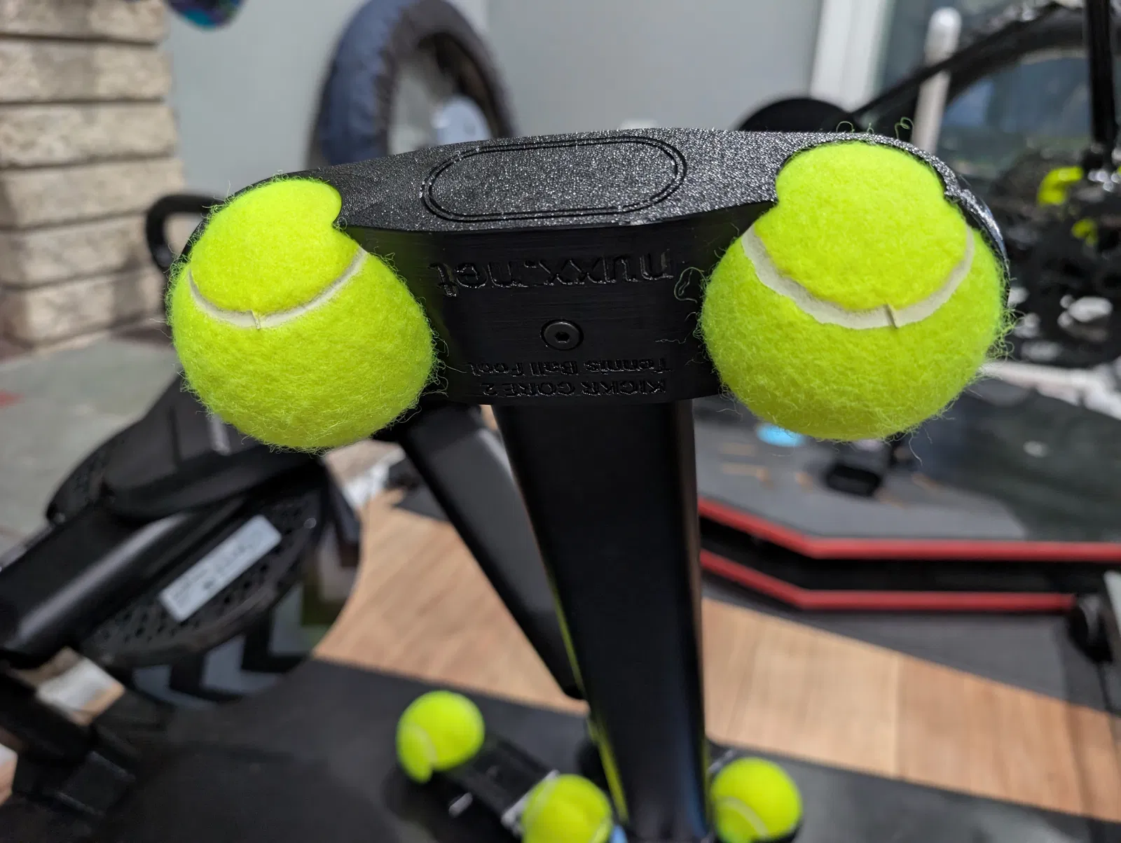 Đây là bộ chân thay thế cho Wahoo Fitness KICKR CORE 2 Smart Trainer, có ngàm giữ bóng tennis để cho trainer có thể lắc (rock) và nhúc nhích nhẹ khi đạp. Cách này giúp giảm mỏi, đạp lâu hơn và thoải mái hơn.