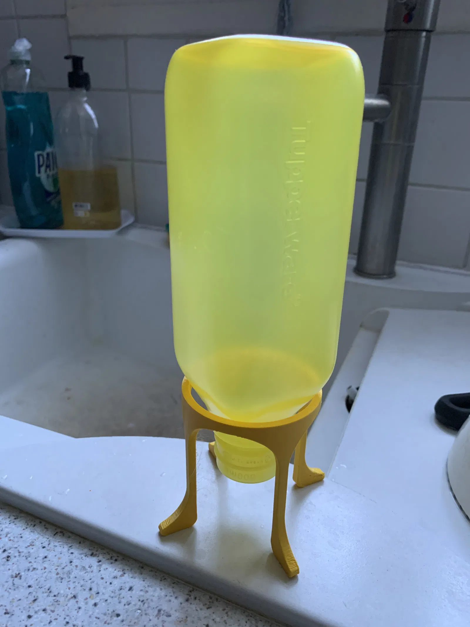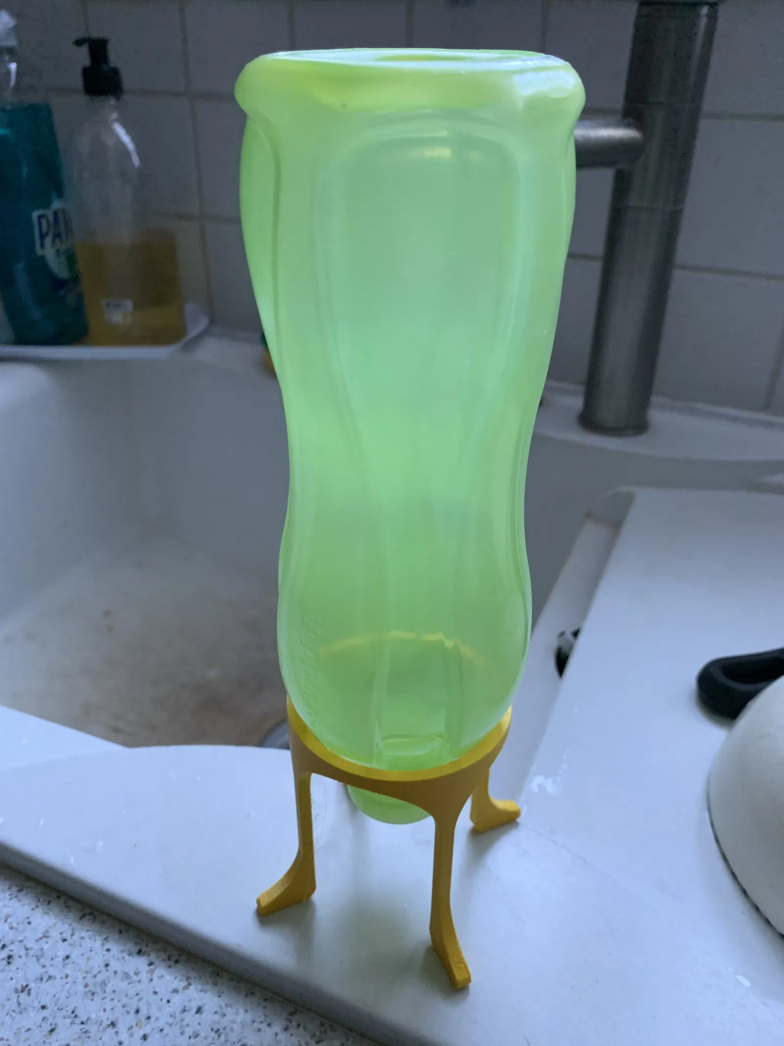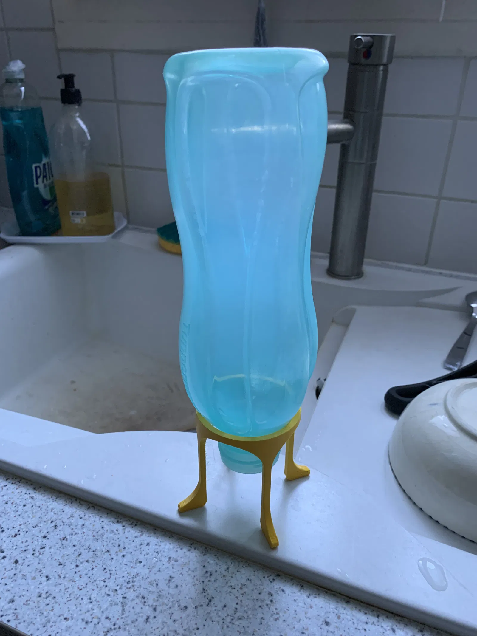 Mẫu giá dựng chai để hong khô, dùng để dựng 1 chai sau khi rửa. Khuyến nghị in bằng PETG (Prusament Yellow) để có độ bền và chịu ẩm tốt, phù hợp dùng trong bếp.