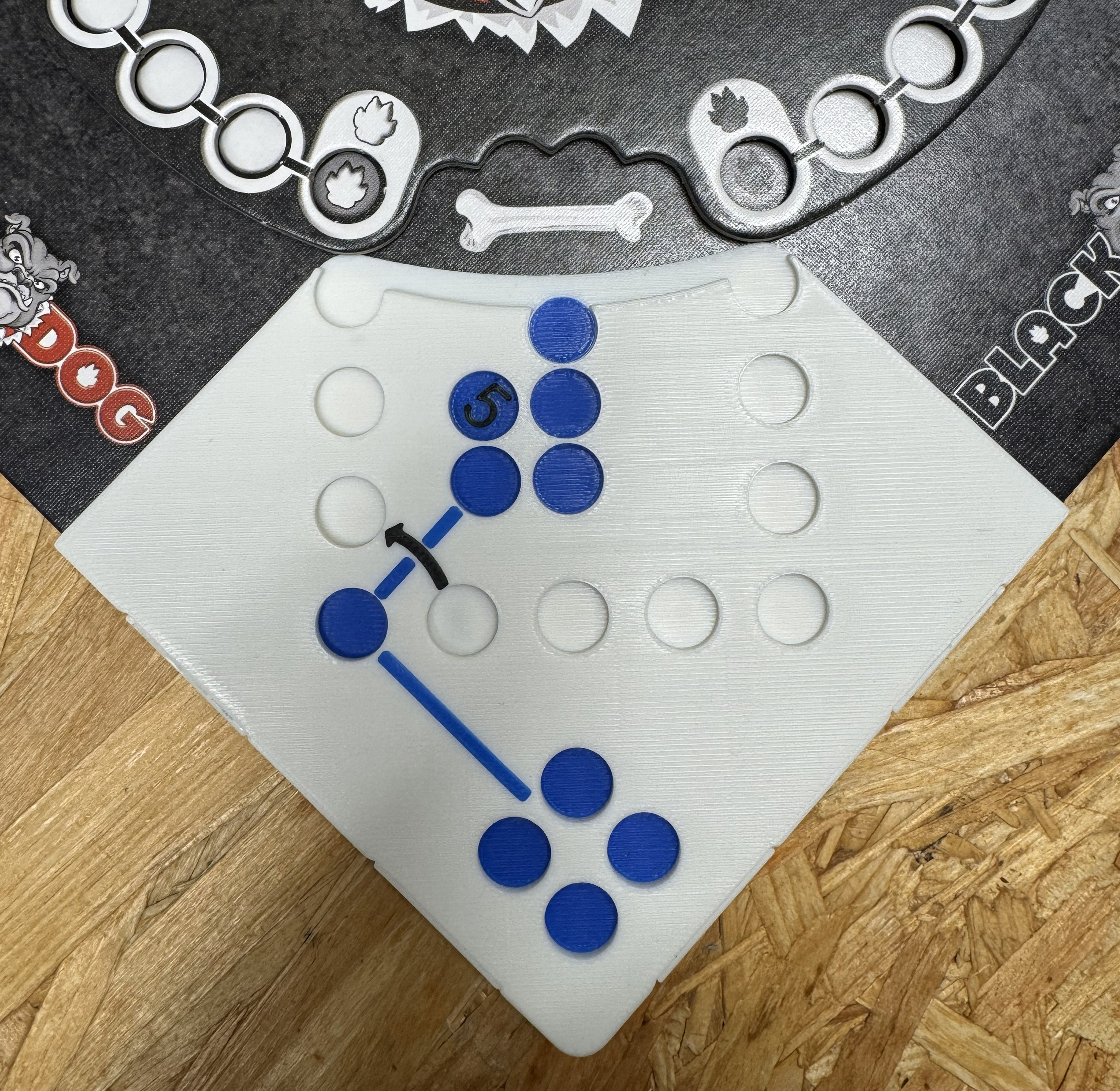 Bộ ô xuất phát tuỳ chỉnh cho game “Black Dog” (Schmidt Spiele) giúp quân cờ đứng chắc hơn và có thể chơi trực tiếp trên bàn. Kèm thêm 1 ô đích cho quân thứ 5 khi chơi phiên bản 2–3 người.
