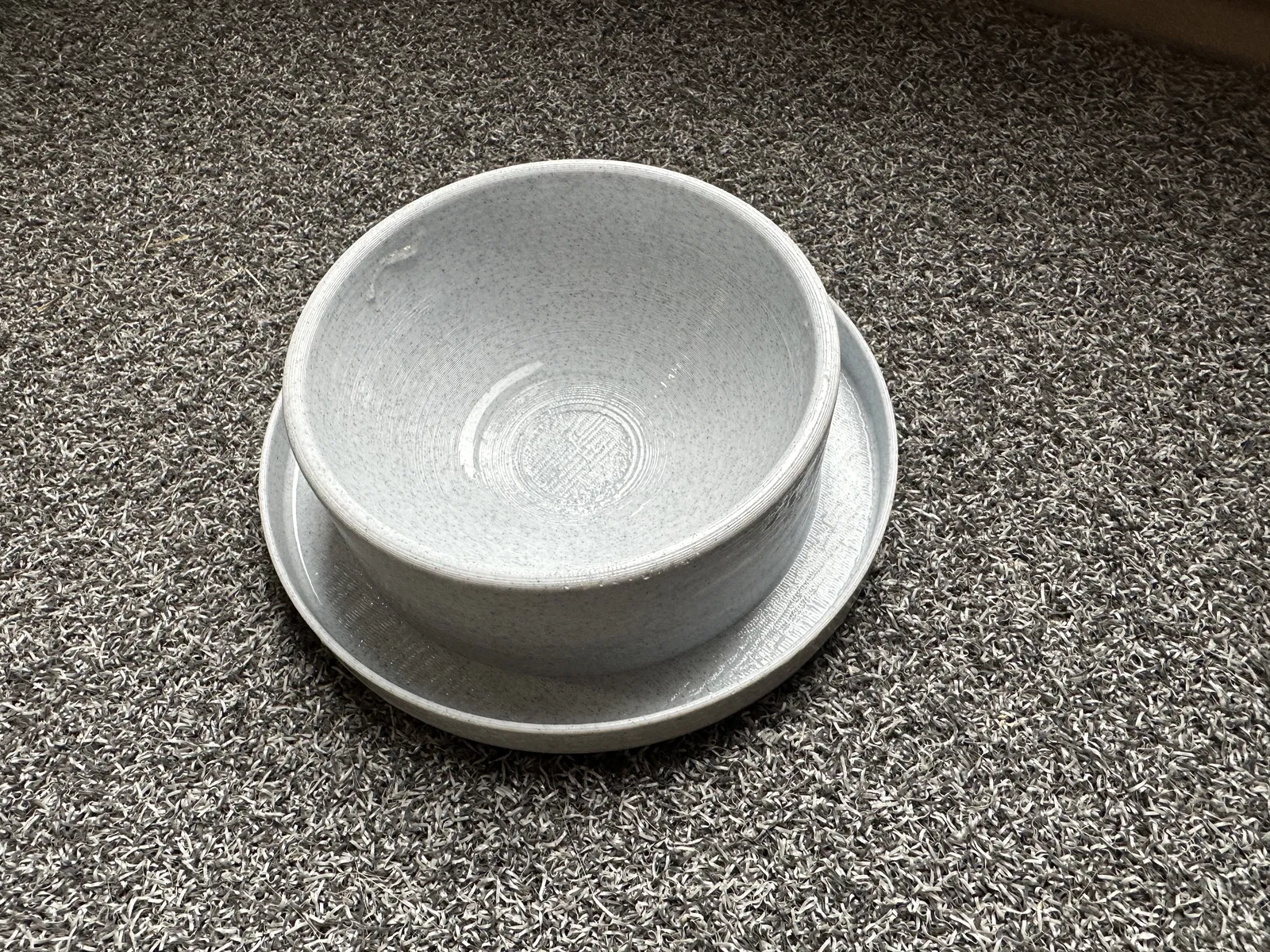 Một chiếc dĩa ăn thanh lịch cho thú cưng nuôi ngoài trời, nơi kiến có thể tranh đồ ăn với mèo hoặc chó nhỏ của bạn. Chỉ cần đổ nước vào rãnh moat để chặn kiến không tới được thức ăn. Nếu dùng nước muối thì còn giúp ngăn sên nữa.
