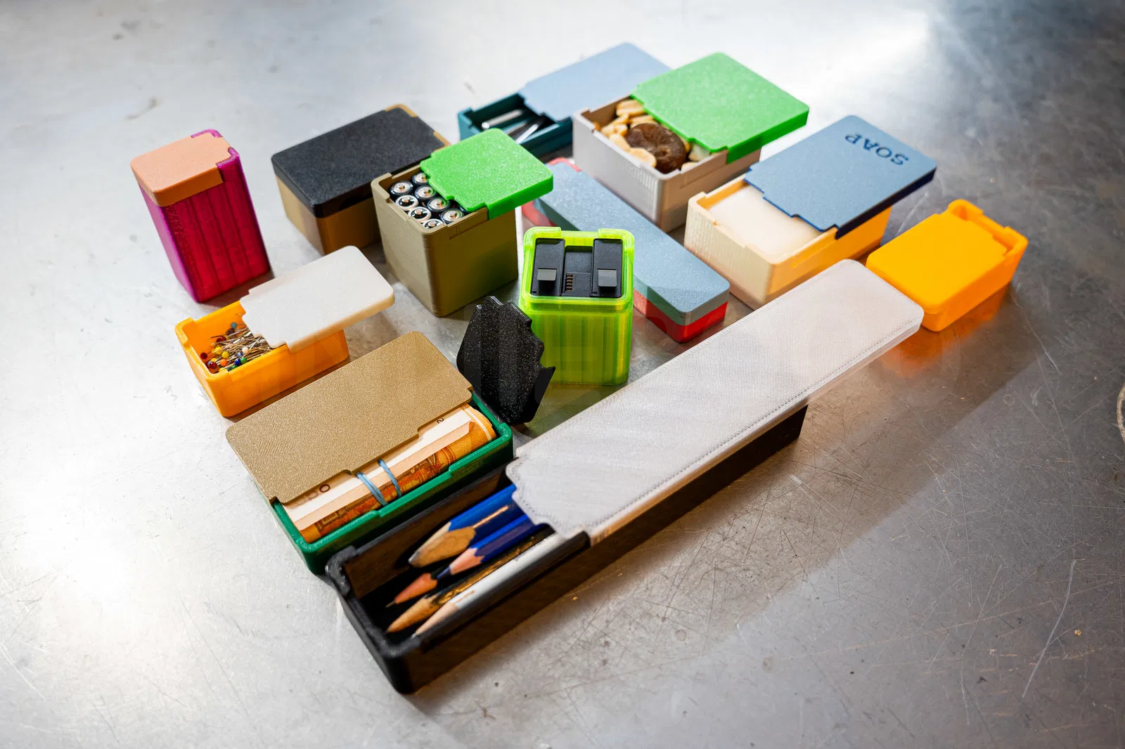 - Hộp in rất ngon cả với PET-G lẫn PLA. Nắp trượt sẽ “snap” đã hơn một chút khi dùng PET-G, nên mình khuyên dùng PET-G.