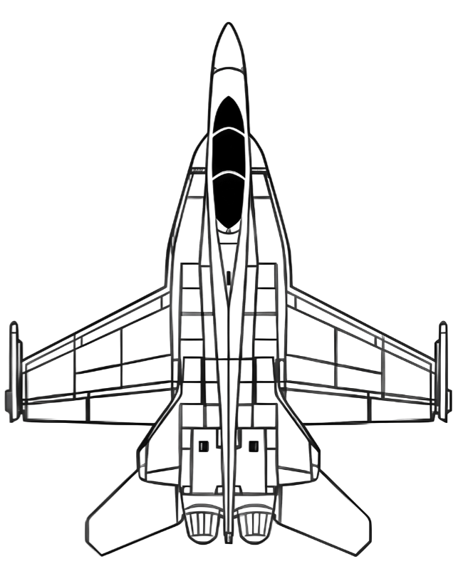 Mẫu tranh treo tường F-18 đơn giản. Trên hình có thể nhìn như phần cockpit không dính với thân, nhưng thực ra có nối. Lưu ý: hai ô vuông không nối với nhau, nhưng vẫn dùng ổn.