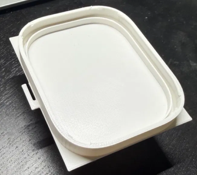 In bằng Prusament PETG màu trắng. Mẫu này nhìn chung kín hơn ở phần mái trên. Vòng cổ thứ hai giúp bịt kín tốt hơn và ngăn nước lọt vào. Hai tay cầm hai bên giúp giữ vững, chịu được cả gió bão mạnh hơn.