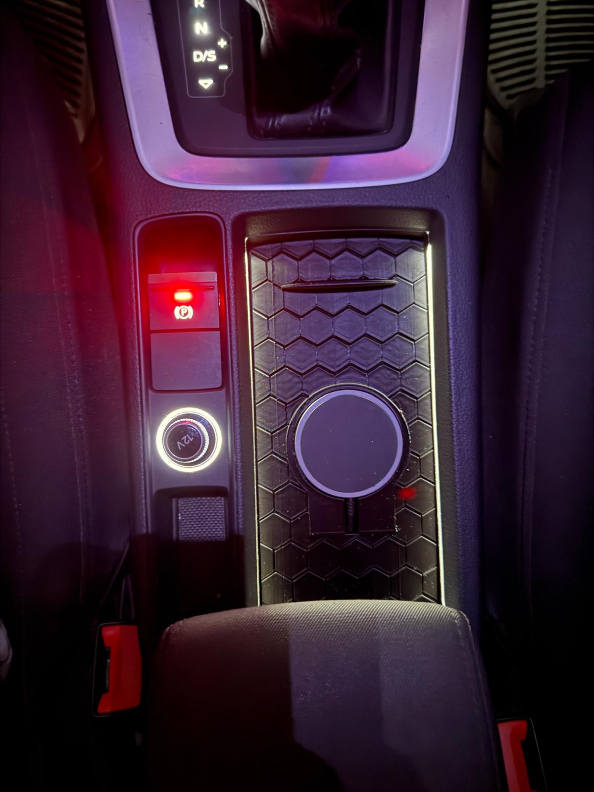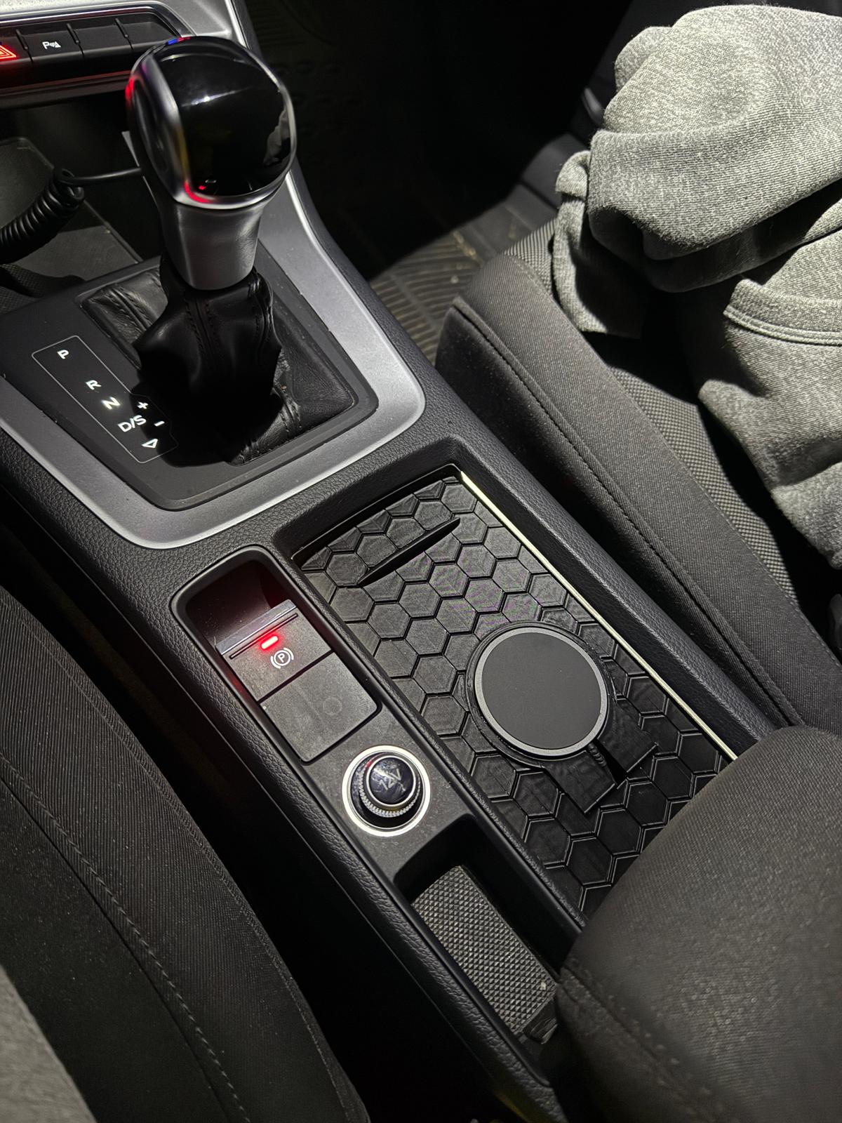 Nắp trên hộc để ly cho Audi Q3 F3 (2019–2025) tích hợp MagSafe Charger. Hỗ trợ sạc dày 5.5mm, đường kính tối đa 60mm, hợp nhiều loại MagSafe low profile và có lỗ đôi để quản lý dây gọn gàng.
