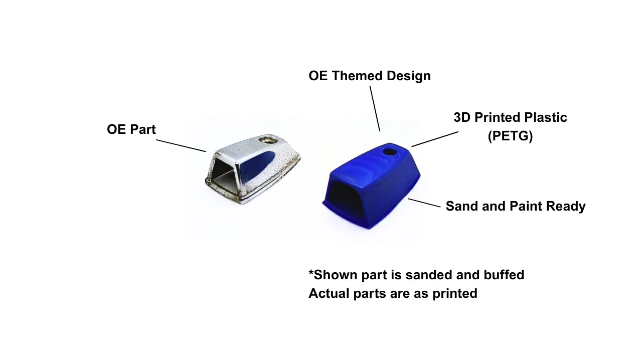 Đèn báo xi-nhan gắn trên vè theo phong cách Mopar, thiết kế dựa kiểu Dodge Aspen (A body). Lắp vị trí zin với chỉnh sửa nhẹ, hoặc gắn cho vè không có sẵn (cần mod). In PETG; có cữ khoan MGE3002 Base.