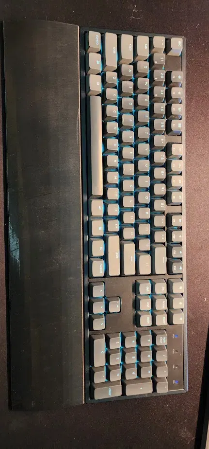 Đây là một đường dốc cổ tay cho Keychron K10 được giữ trên 4 dải lệnh Velcro.