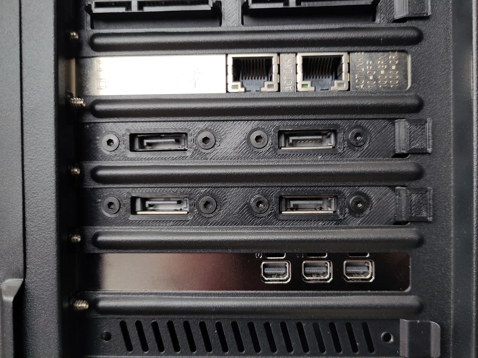 Cái này cho phép bạn cắm ổ SATA từ bên ngoài thùng PC. Nó dùng một sợi SATA extension cord mà bạn có thể bắt vít trực tiếp lên phần 3D print. Cần ốc M3 để cố định đúng vị trí. Xem hình cuối để biết bạn cần những gì.