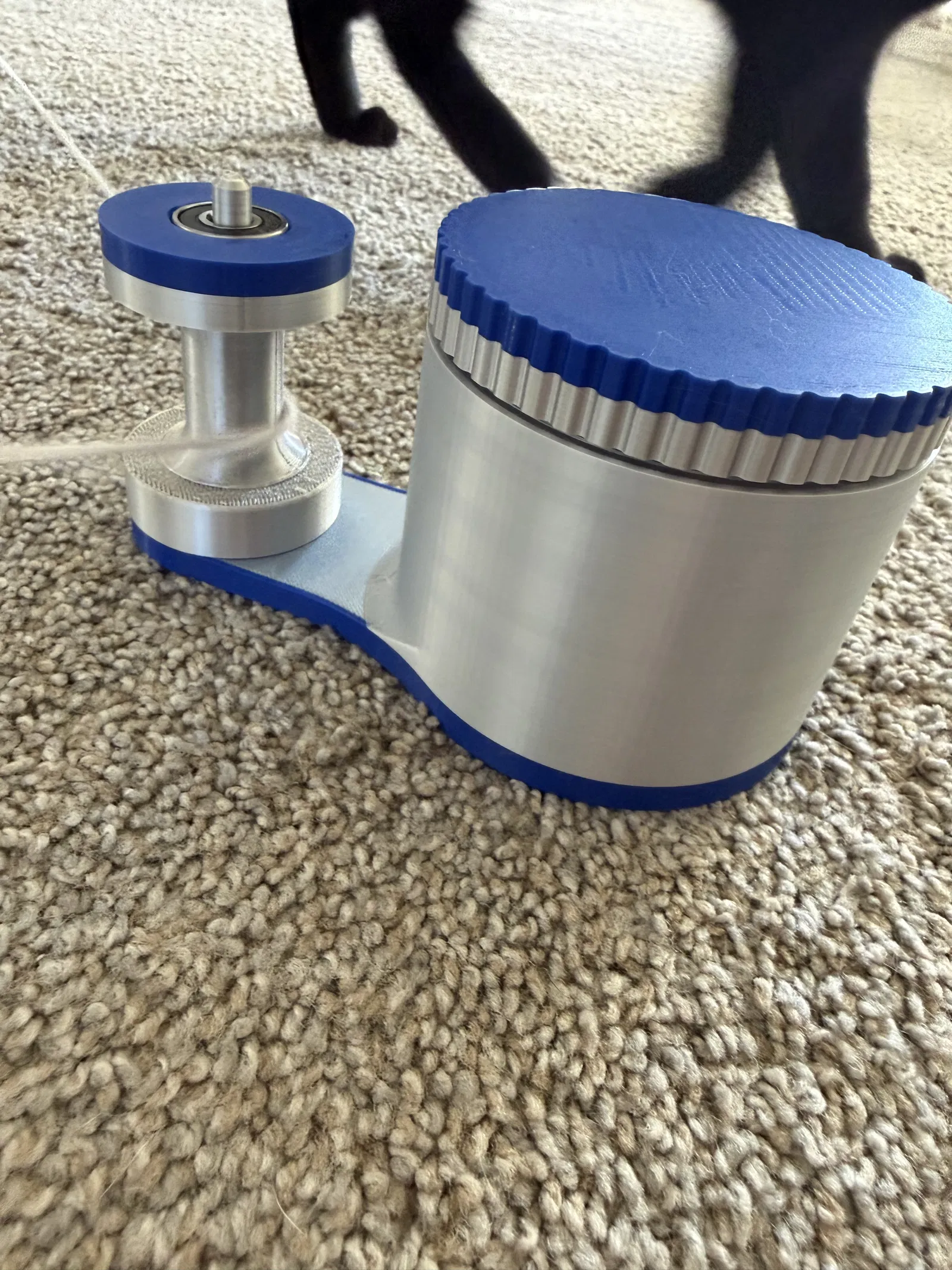 Mẫu con lăn dạng ống được chỉnh sửa để tăng độ bám và hạn chế việc mèo kéo sợi dây tuột khỏi ròng rọc (pulley) trong đồ chơi đuổi bắt, giúp chơi ổn định hơn.