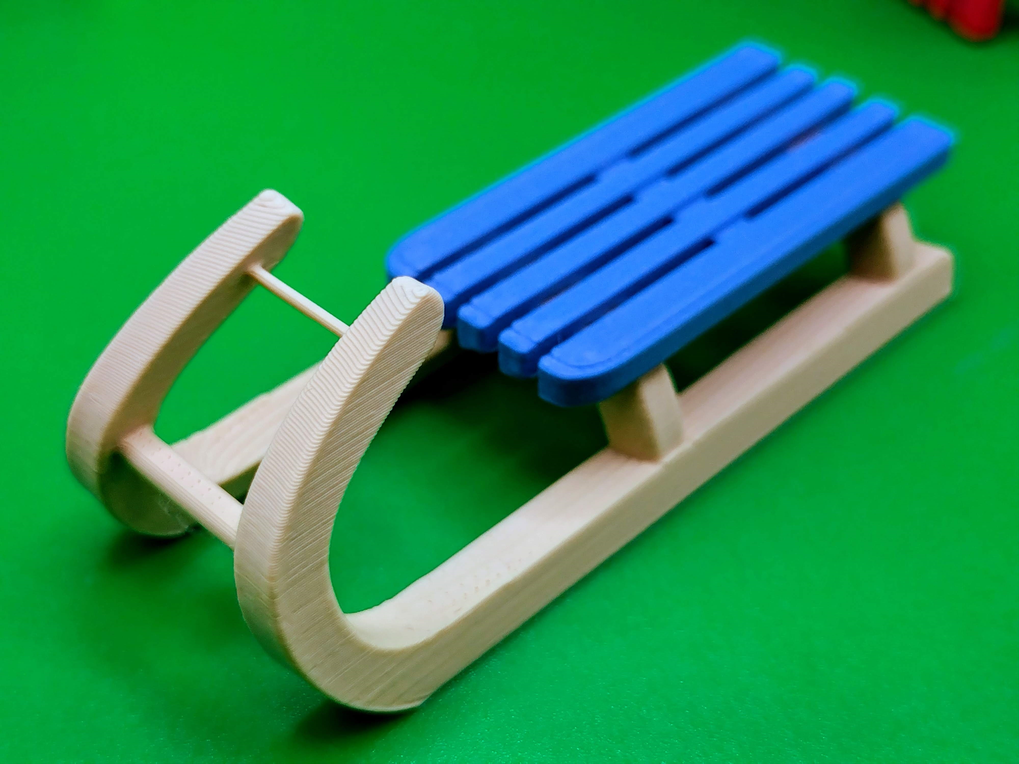 Mẫu Snow sled ornament in 3D không cần supports, không cần dán keo. Chỉ việc bấm khớp 2 phần lại với nhau, có thể để bàn hoặc treo trang trí. Khuyến nghị nozzle 0.4, layer 0.15 (Prusa) hoặc 0.16 (Bambulab).