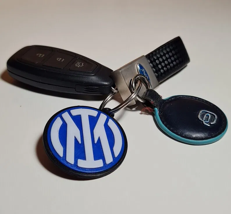 Inter Keychain được tạo bởi máy in 3D, với Flyingbear Ghost 5. Nó được in hoàn toàn với 3 sợi PLA (đen, trắng và xanh), không có công việc sau in và đo đường kính là 42 mm.