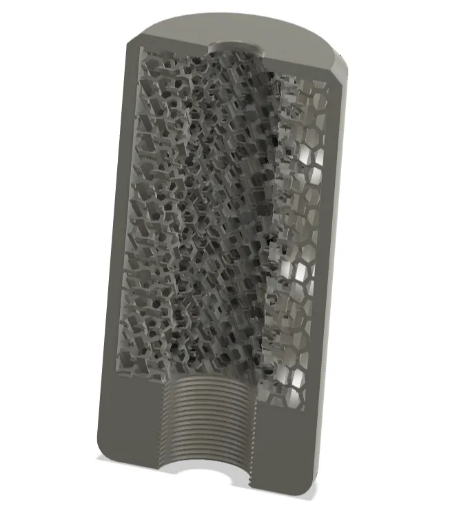 Đây là một suppressor có SOUND SUPPRESSING MEDIA tích hợp sẵn, được in (print) chung với chi tiết và thay thế cho miếng mút (sponge) như ở các suppressor truyền thống. Nó được thiết kế cho ren 14mm CCW.