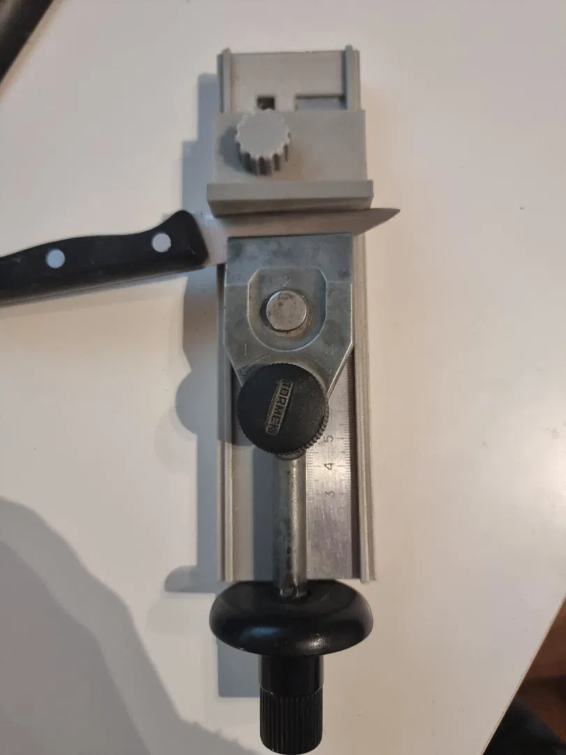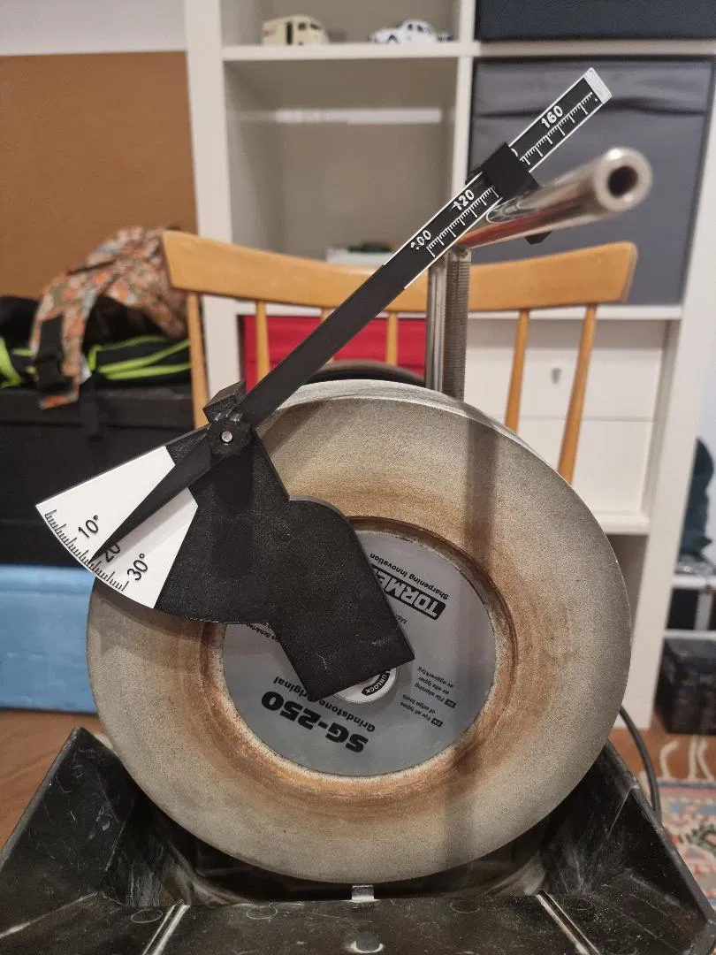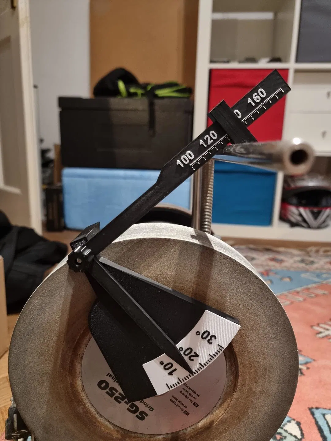 Bộ Angle adjuster giá rẻ để canh góc mài dao trên Tormek T8. In PLA layer 0.2 mm, chỉ cần support cho phần base. Lắp với 2 bu lông M5x30 và đai ốc. Không dùng cho T4 do đai ốc trung tâm khác.